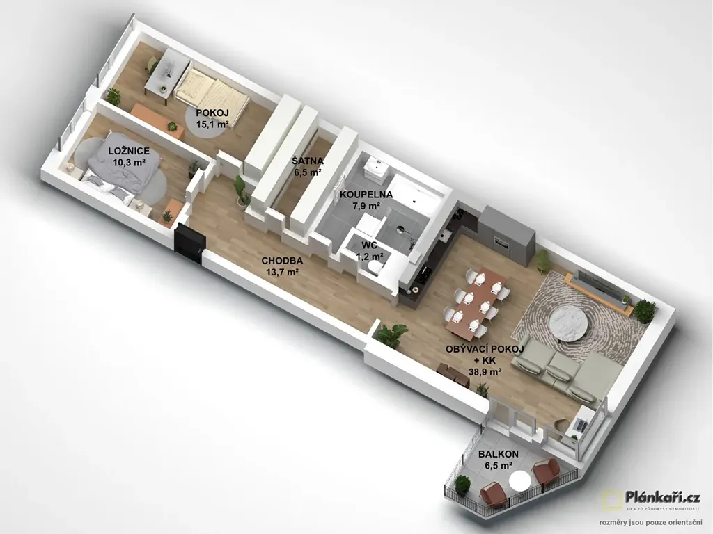 Dispozice bytu 3+kk: