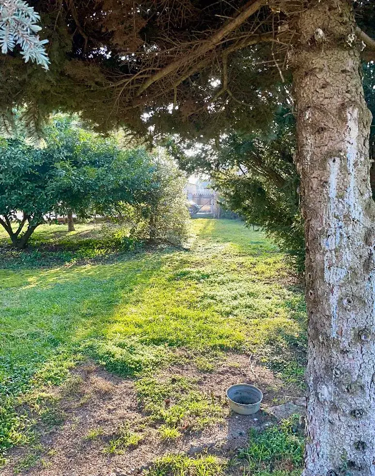 Nezastavěná část stavební parcely slouží jako dvorek, navazuje zahrada s porosty stromů a keřů, travnatá, 383 m, obdélník, přístupná z ulice Na Tabuli.