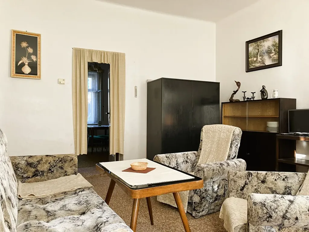 Dům má pouze tři bytové jednotky, což zaručuje klidné bydlení bez velkého provozu. Byt o podlahové ploše 59,08 m² nabízí praktické uspořádání: vstupní chodbu, kuchyni, dva obytné pokoje, koupelnu s vanou a umyvadlem, samostatné WC a komoru. Vytápění a ohřev vody zajišťuje vlastní plynový kotel.