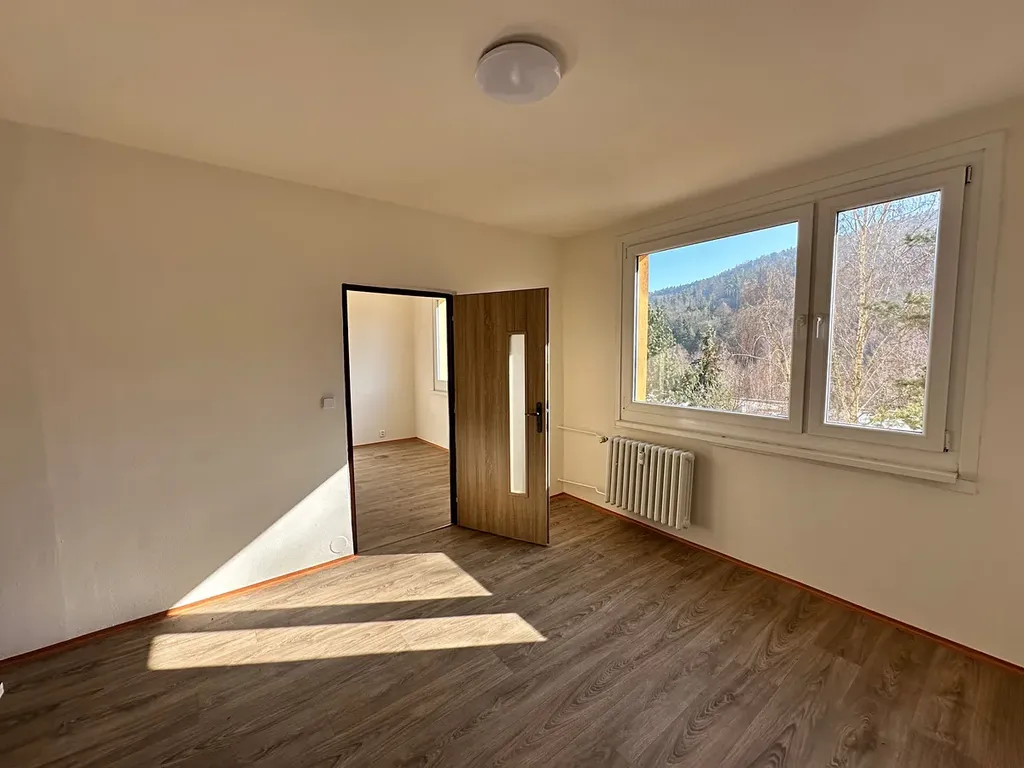 Nabízíme k podnájmu byt v městské části Děčín IX Bynov. Byt je ve vlastnictví bytového družstva, což je zárukou stabilního smluvního vztahu. Slunný byt s krásnými výhledy ve 4. patře rekonstruovaného panelového domu je vhodný k okamžitému užívání. Dům je samostatný s pouze dvěma vchody, v příjemném prostředí, obklopený vzrostlou zelení. Byt má zděné bytové jádro, v koupelně je osazen prostorný sprchový kout, umyvadlo a WC mísa. Kuchyňská linka je standartní, elektrický sporák, základní podlahové krytiny, okna plastová.