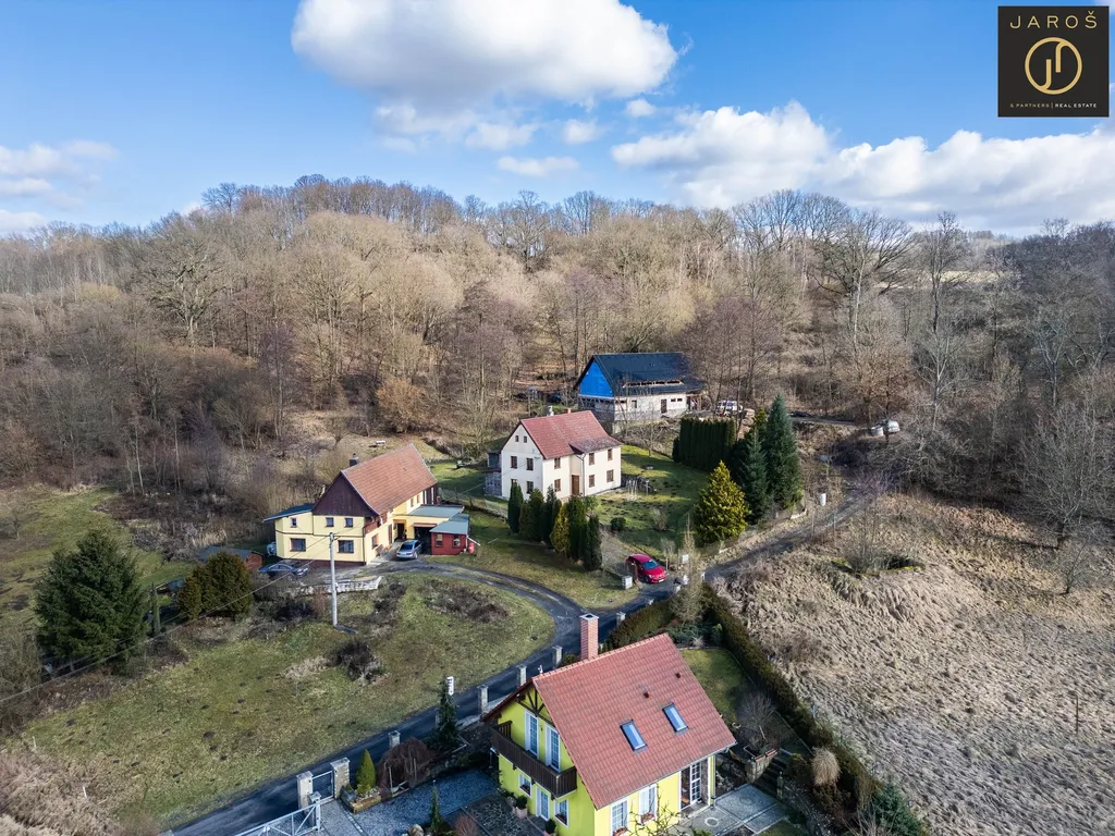 Pozemek kolem domu je zatravněný, mírně svažitý a poskytuje příjemné soukromí. Součástí je samostatná kůlna vhodná pro uskladnění zahradního nářadí nebo palivového dřeva a ze zahrady je přímý vstup do lesa.