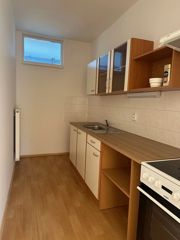 Jedná se o čistý a pečlivě udržovaný byt, nově bíle vymalován a uklizen. Dispozice bytu: obývací pokoj 29 m² volně navazuje na oddělenou kuchyňku / výklenek s oknem do pavlačové chodby - rovná kuchyňská linka v odstínu buk je doplněna novým elektrickým sporákem se sklokeramickou varnou deskou a novou bílou digestoří; prostorná koupelna vybavena vanou + skleněná zástěna, přípojka na pračku 600 mm, WC samostatné. Vstupní hala - předsíň - místo pro šatní skříně. V bytě jsou žaluzie, garnyže, stropní svítidla.