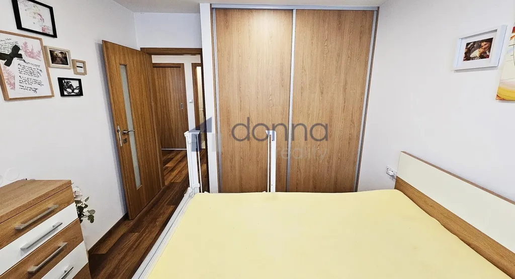Dvě ložnice orientované na sever: hlavní s postelí a úložnými prostory na míru, druhá jako dětský pokoj, pokoj pro hosty nebo pracovna.