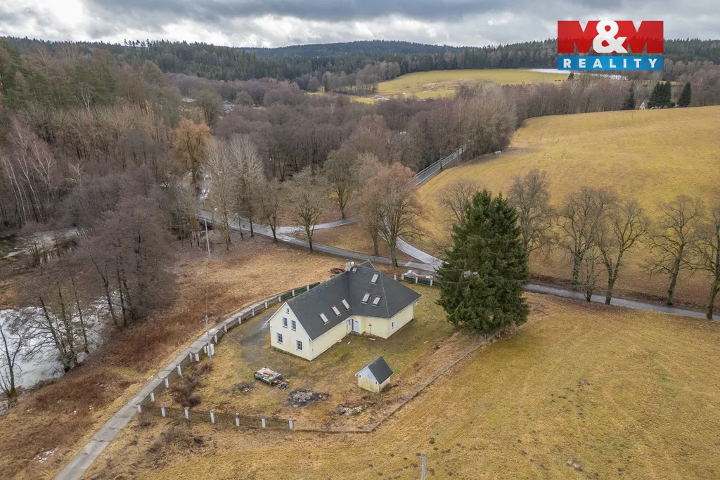 Nabízím k prodeji velký rodinný dům ve Vernéřově u Aše s užitnou plochou 357 m2, zasazený na rozlehlém pozemku o výměře 12 951 m2 v malebné krajině pouhé 4 km od města Aše a nedaleko hranic s Německem. Nemovitost leží na výjimečném místě přímo u rybníka, obklopená přírodou, což z ní činí ideální volbu pro klidné rodinné bydlení, vícegenerační soužití či rekreační objekt s výrazným potenciálem. Dům je určen ke kompletní rekonstrukci, a nový majitel si jej tak může přetvořit přesně podle svých představ a potřeb. K dispozici je vlastní čistička odpadních vod, pitná voda z kopané studny, vytápění elektrickým kotlem nebo kotlem na tuhá paliva a ohřev vody zajišťuje bojler. Pokud hledáte prostor, soukromí a jedinečné místo v přírodě s velkorysým pozemkem, tato nabídka představuje mimořádnou příležitost k investici i vysněnému bydlení.