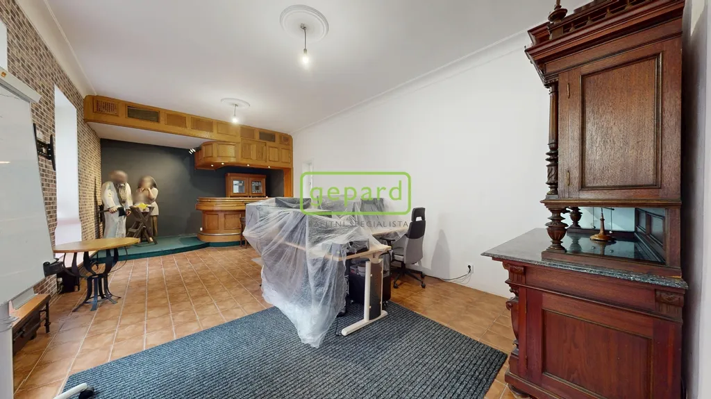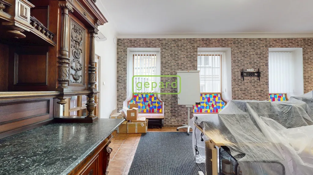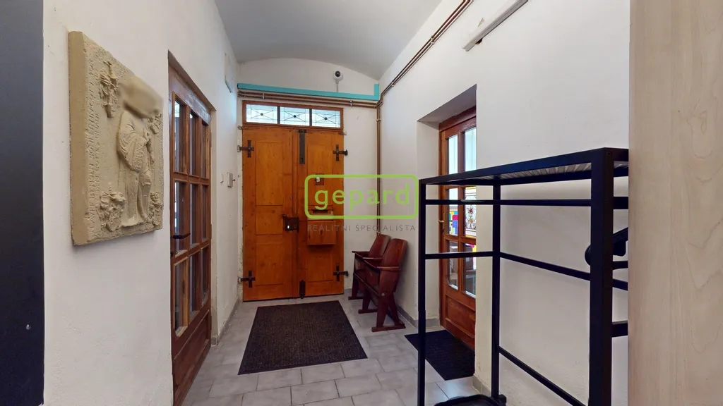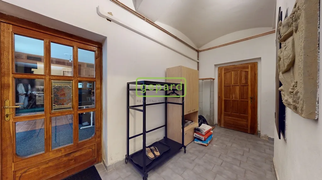 V prvním patře, dříve využívaném jako galerie, se dnes nachází kancelář a skladové zázemí. Druhé patro, kde v minulosti sídlilo muzeum, nabízí kuchyň, koupelnu, dva samostatné pokoje a pavlač se vstupem na samostatné WC s výhledem do okolí historického centra. Interiér zaujme původními dubovými dveřmi a vitrážovými okny v prvním patře, ve vyšším podlaží pak dřevěnými podlahami. Spodní část domu je řešena dlažbou.