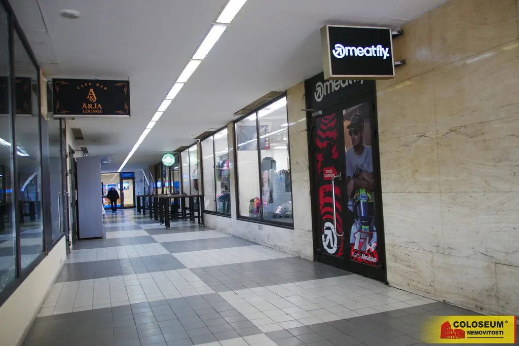 Prostor je ideální pro maloobchodní prodejnu. Disponuje prostornou výlohou orientovanou do pasáže, která nabízí vynikající možnost prezentace produktů kolemjdoucím zákazníkům.