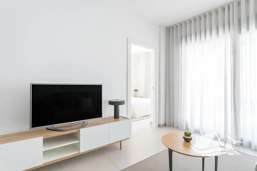 Tento apartmán ve 4. patře nabízí zastavěnou plochu 75,87 m² a vyniká velkorysou krytou terasou o rozloze 29,86 m². Právě terasa posouvá bydlení o úroveň výš a vytváří přirozené rozšíření obytného prostoru, kde můžete trávit večery s rodinou, pracovat na dálku s dostatkem světla nebo si jednoduše užívat středomořské klima. Vyšší podlaží zároveň přináší více soukromí a otevřenější výhledy.