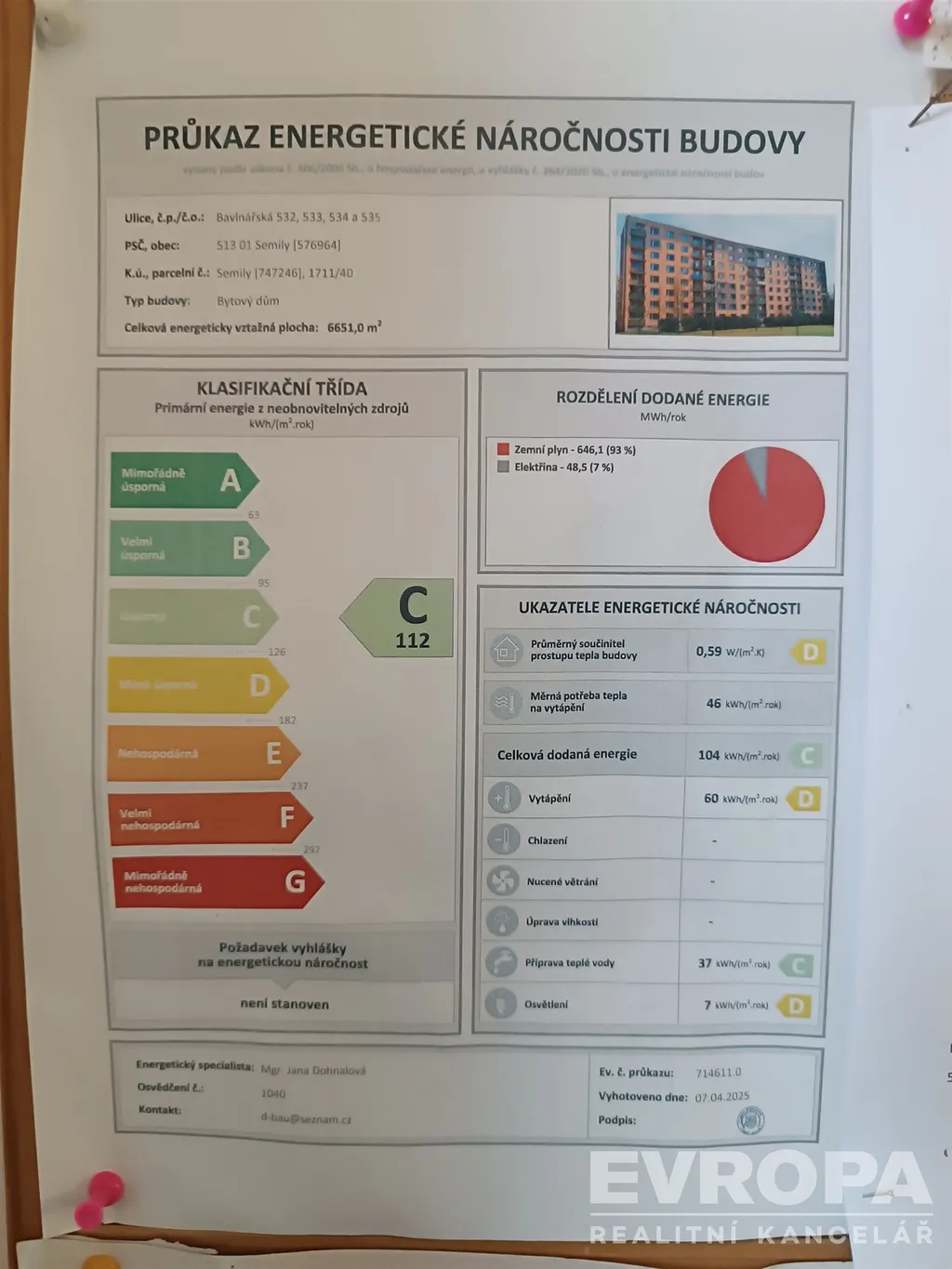 | Ukazatel energetické náročnosti | 112 kWh/m2 za rok |