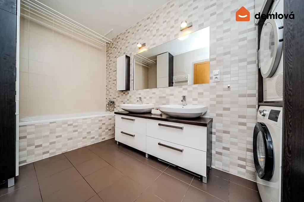 Dispozičně byt nabízí dvě koupelny: