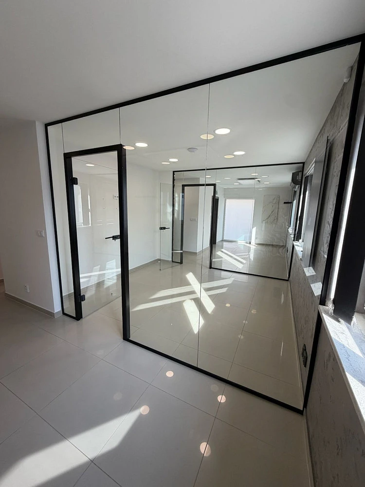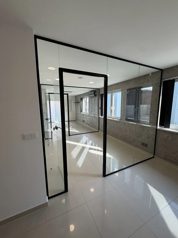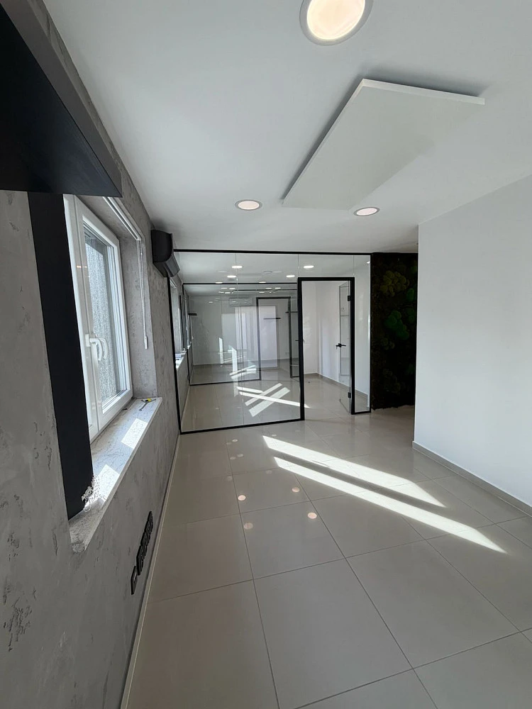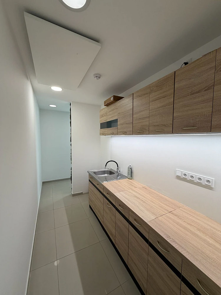 Kancelářské prostory jsou rozděleny na dvě kanceláře, prosklenou zasedací místnost, kuchyň, chodbu a wc.