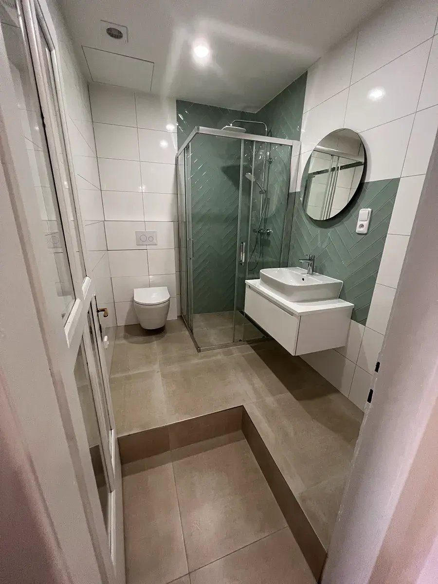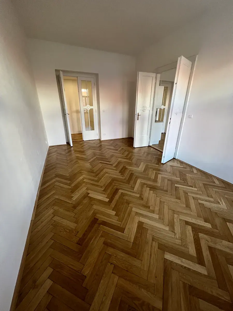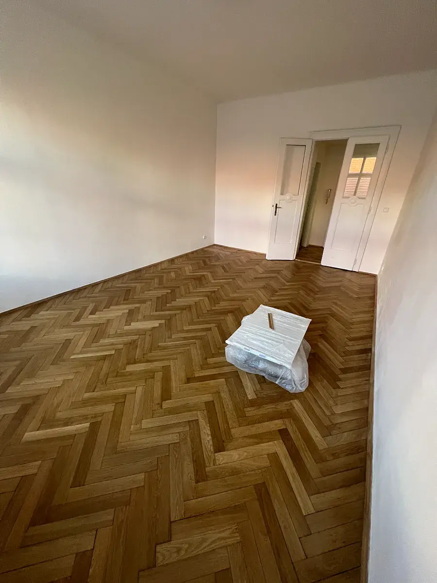 Byt prošel kompletní rekonstrukcí přibližně před dvěma lety a nabízí kombinaci moderního standardu a klasických prvků typických pro pražské činžovní domy – vysoké stropy, velká okna a renovované dubové parkety ve vzoru rybí kosti.