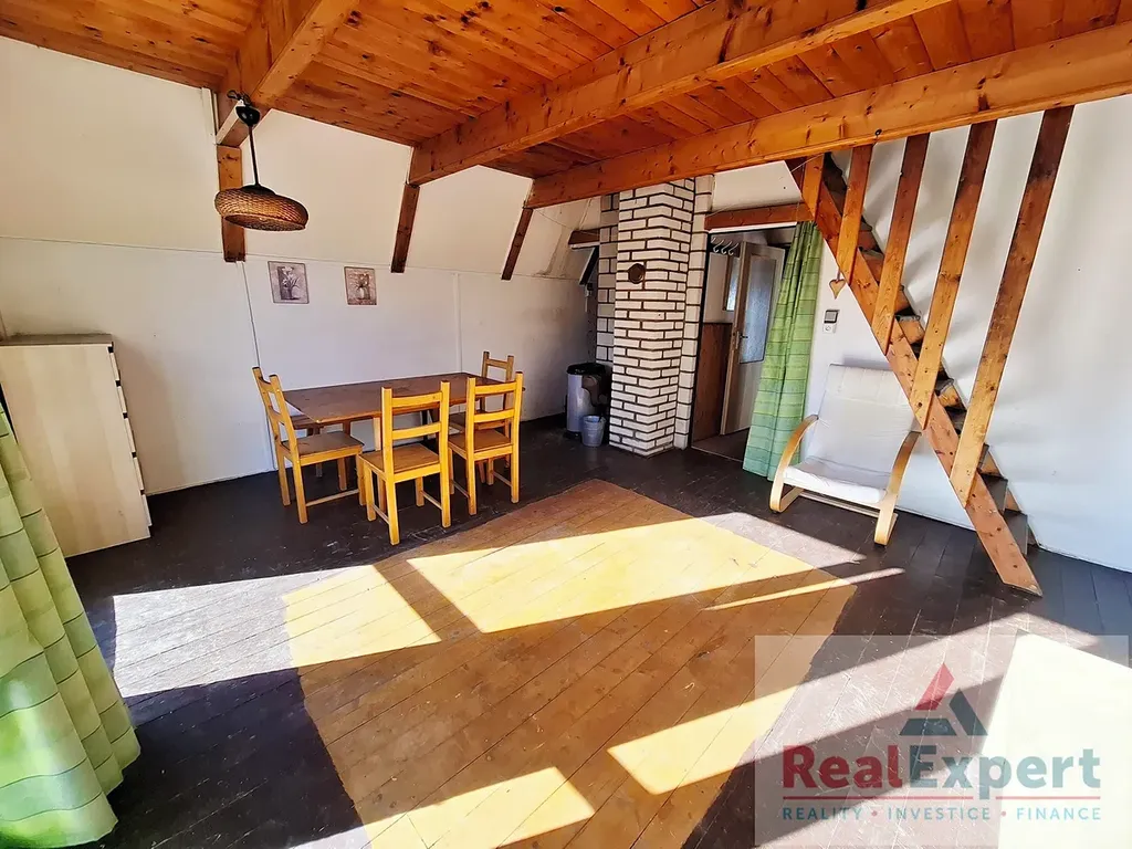 Exkluzivně nabízíme k prodeji chatu v obci Struhařov, okres Praha - východ. Klasická chata určená k rekreačnímu užívání se nachází v klidné ulici mezi rodinnou zástavbou. Pozemek lze využít i pro stavbu rodinného domu. Na pozemku o celkové ploše 721 m2 jsou celkem tři stavby. Patrová chata o zastavěné ploše 39 m2 má tvar písmene A, v přízemí je předsíň, toaleta, obytná místnost a kuchyňka, horní patro tvoří velká místnost určená na spaní. Druhá stavba o zastavěné ploše 21 m2 je tvořena obytnou místností. Třetí stavba je klasická kůlna. Chata i přístavba jsou napojeny na elektřinu, do chaty je zavedena také voda a je napojena na kanalizaci. Hlavní budovu lze vytápět kamny, přístavbu elektrickými přímotopy.