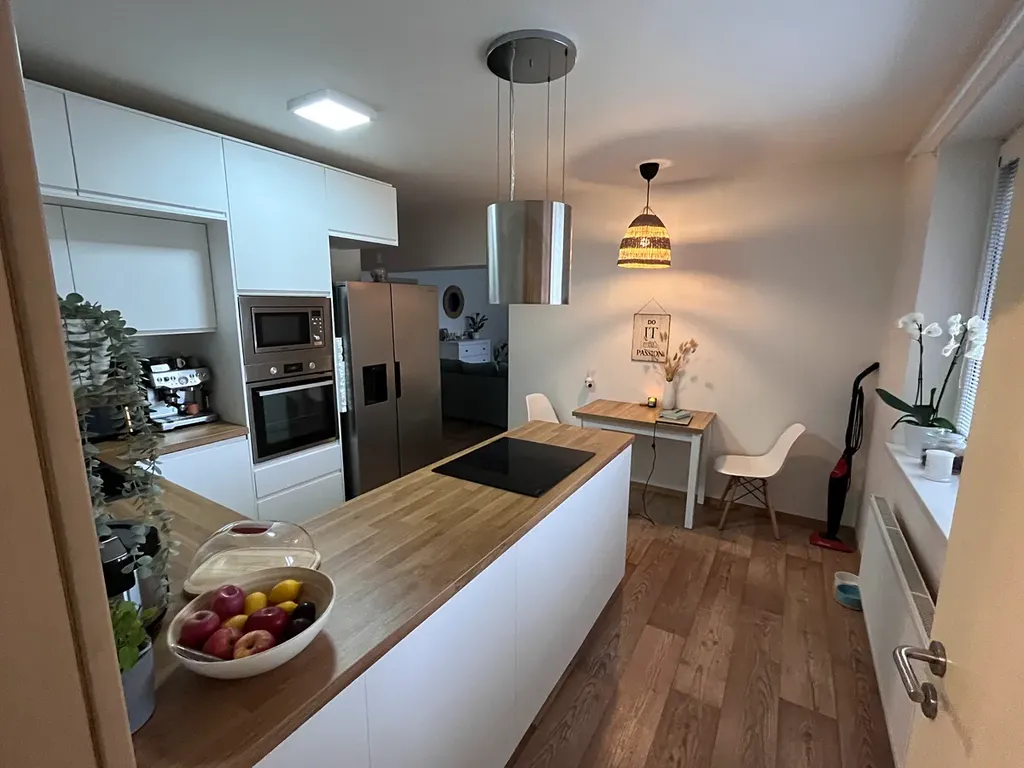 Nová kuchyně se spotřebiči (el. varná deska, el. trouba, digestoř, mikrovlnka) v samostatné místnosti s oknem a prostorem pro jídelní stůl, volně otevřeno za malou chodbou do obývacího pokoje s balkonem s vyhlídkou na západ do dvorů, ložnice s francouzským oknem do ulice na východ a dětský pokoj rovněž s francouzským oknem do ulice na východní stranu, nově realizovaná koupelna s umyvadlem se skříňkou, sprchovým koutem i vanou a prostorem pro pračku i sušičku, samostatné WC s umyvadlem, vstupní chodba s vestavěnou skříní. K bytu náleží sklep. Vynikající technický stav bytu.