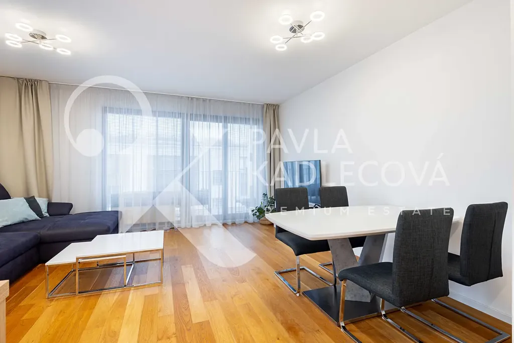 Nabízíme k pronájmu prostorný byt o dispozici 3+kk a celkové ploše 100 m², situovaný 8NP v rezidenci Karolína Plaza.