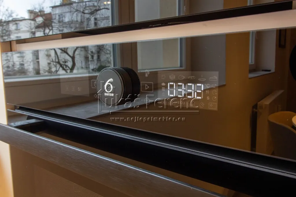 Kuchyňská linka je vyrobena na míru a vybavena kvalitními vestavnými spotřebiči: myčka nádobí Electrolux, indukční varná deska Whirlpool, vestavná trouba a mikrovlnná trouba Whirlpool, součástí kuchyně je rovněž vestavná pračka a lednice s mrazákem. Design prostoru podtrhuje betonová stěrka, elegantní osvětlení a velkoformátová dlažba plynule navazující na dřevěné parkety ve vzoru rybí kosti.