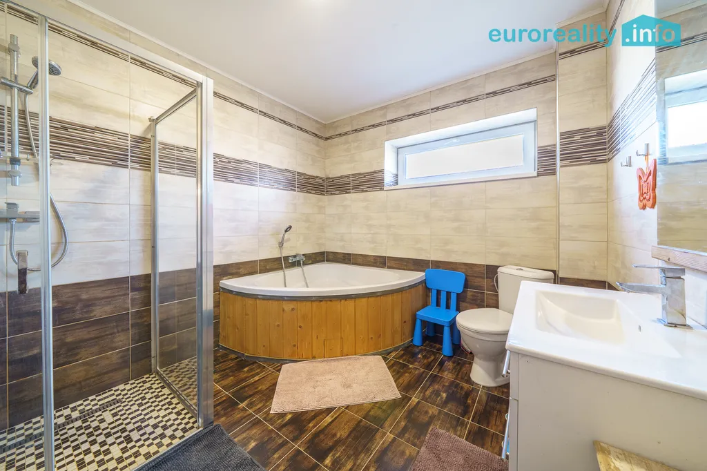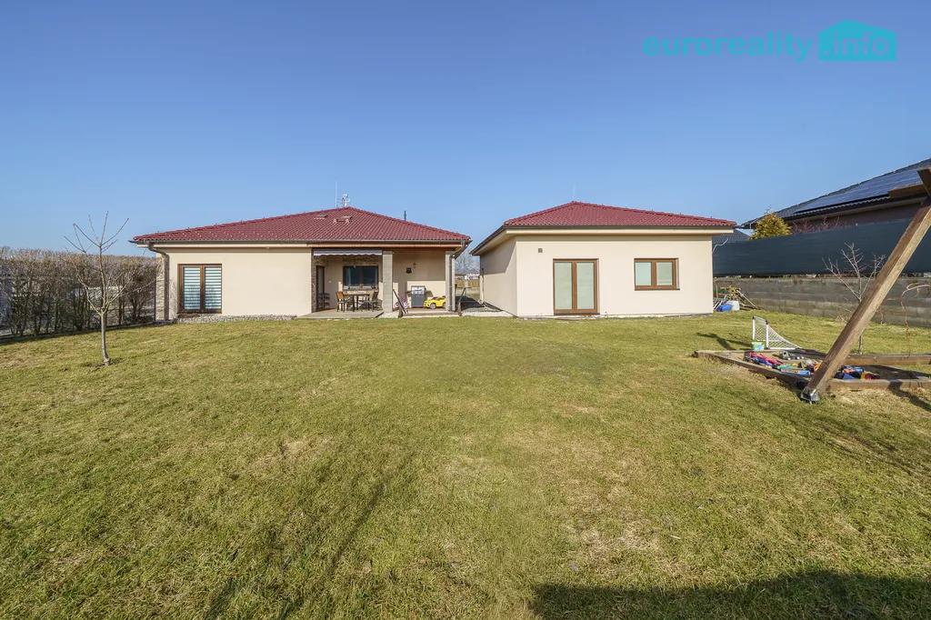 Nabízíme k prodeji přízemní zděný rodinný dům o dispozici 4+kk s dvojgaráží a zahradou, který se nachází v jedné z nejatraktivnějších lokalit Karlových Varů, v Horách u Jenišova. Novostavba bungalovu byla zkolaudována v roce 2020 a nový majitel tak může očekávat moderní bydlení s použitím kvalitních materiálů. Nemovitost se nachází v oblasti I. fáze výstavby Hory ( Central Group) a není zatížena žádnými právními nároky. Dům disponuje 3 prostornými pokoji, kuchyní s obývacím pokojem, koupelnou s WC, technickou místností a komorou. Stavba je zateplena, včetně podlah a stropů, jsou zde PVC okna s trojskly, má protiradonové opatření a drenážní systém. Je připojena na obecní vodovod a spádovou kanalizaci. Otop je řešen plynovým kotlem (Protherm) s teplovodním rozvodem do podlah, ohřev pak zajišťuje bojler s cirkulací oběhu teplé vody. Zároveň je zde příprava na krbové vytápění, která však nebyla dokončena. Do domu je přivedena elektřina 220 a 400 V. Velkou výhodou jsou datové rozvody po celém domě a doživotní internet ZDARMA díky centrálnímu rozvodu umístěném přímo ve stavbě. Součástí prodeje je dvougaráž o výměře 78 m2, která se nachází vedle domu a může sloužit nejen k parkování aut, ale zároveň jako dílna, či k vybudování další ubytovací kapacity. Zděná stavba garáže je kompletně zateplena, má PVC okna rovněž s trojskly a francouzské okno na pozemek. Rovinatá zahrada s výsadbou ovocných stromů a rostlin, krásný vzrostlý živý plot s upravenou skalkou a nepochybně terasa s posezením nabízí mnoho možností trávení volného času jak pro dospělé, tak pro děti. Celý objekt je navíc napojen na kamerový a zabezpečovací systém. Obec Hory je moderní, rychle se rozvíjející obcí jen 3 minuty od Karlových Varů, která je obklopena nádhernou přírodou CHKO. Zároveň je zde skvělé dopravní spojení ať už MHD, nebo meziměstskými autobusy. Tuto nemovitost lze financovat hypotékou, kterou vám rádi zdarma vyřídíme v rámci našich služeb.
