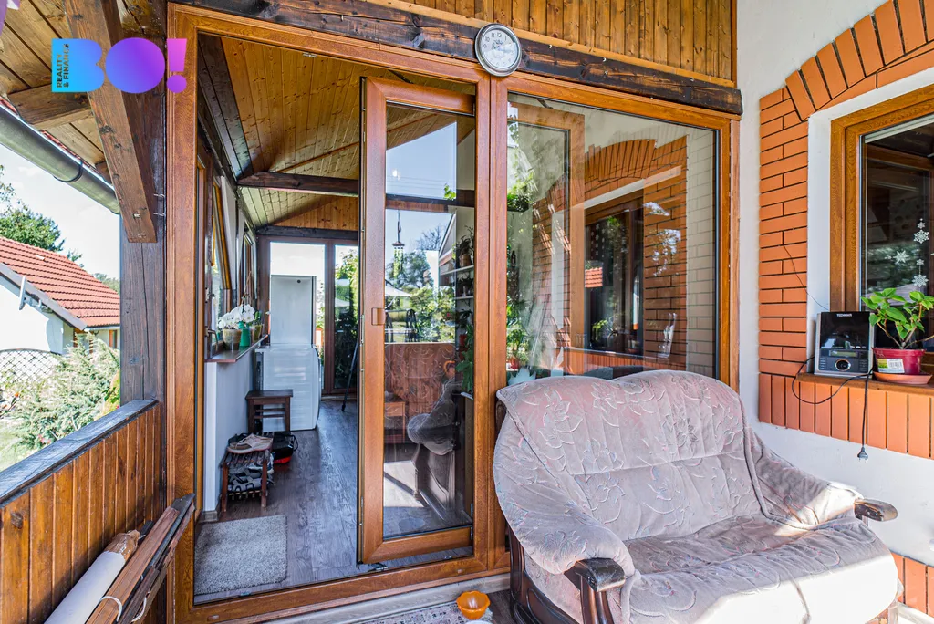 Nabízíme středně velký moderně stavěný cihlový rodinný dům s fotovoltaikou s nádherně upravenou zahradou s altánkem, krytým bazénem a druhým menším domem v rohu zahrady.