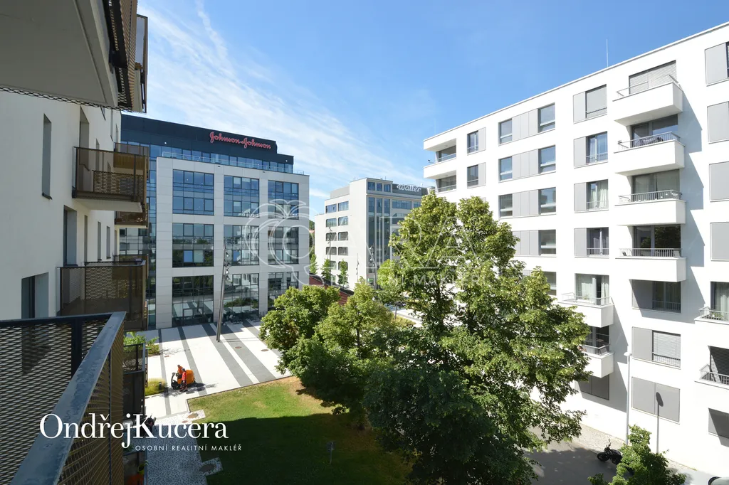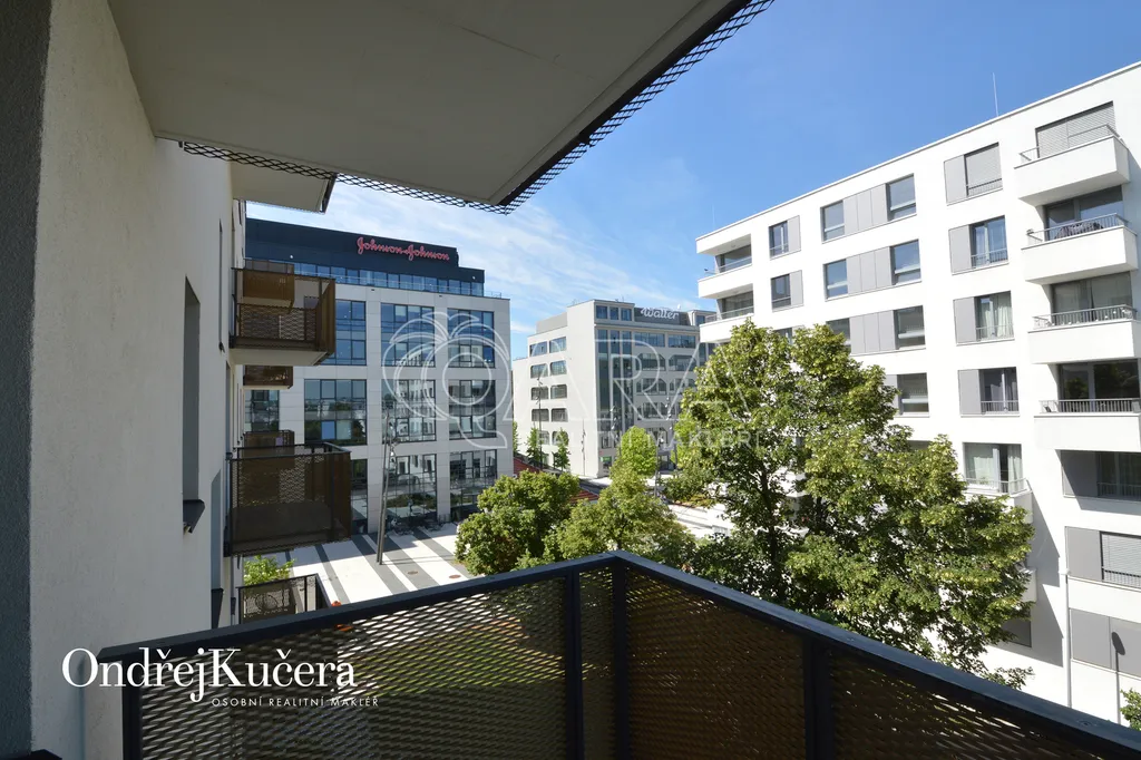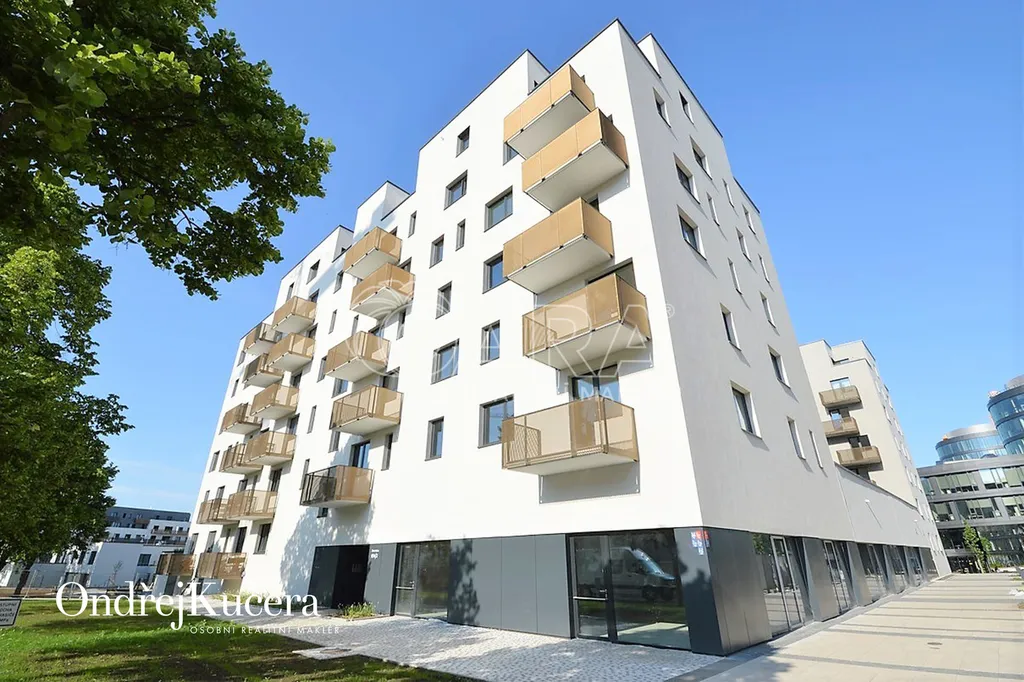 Světlý a komfortní byt dispozičně řešený jako 1+kk s balkonem a s celkovou výměrou 38m2, se nachází ve čtvrtém patře novostavby s výtahem. Byt nabízí samostatný pokoj s kuchyňským koutem a se vstupem na balkon 5m2, orientovaným na západ. V předsíni se nachází velká vestavěná skříň, v koupelně sprchový kout, toaleta a pračka (není na fotografii). V bytě jsou bezpečnostní dveře, plovoucí podlaha, vestavěná kuchyňská linka na míru, zařízená kvalitními spotřebiči, jako sklokeramická deska, odsávací digestoř, lednice s mrazákem, myčka a mikrovlnka. Pro rezidenty domu je ve vnitrobloku soukromá zahrada s posezením.