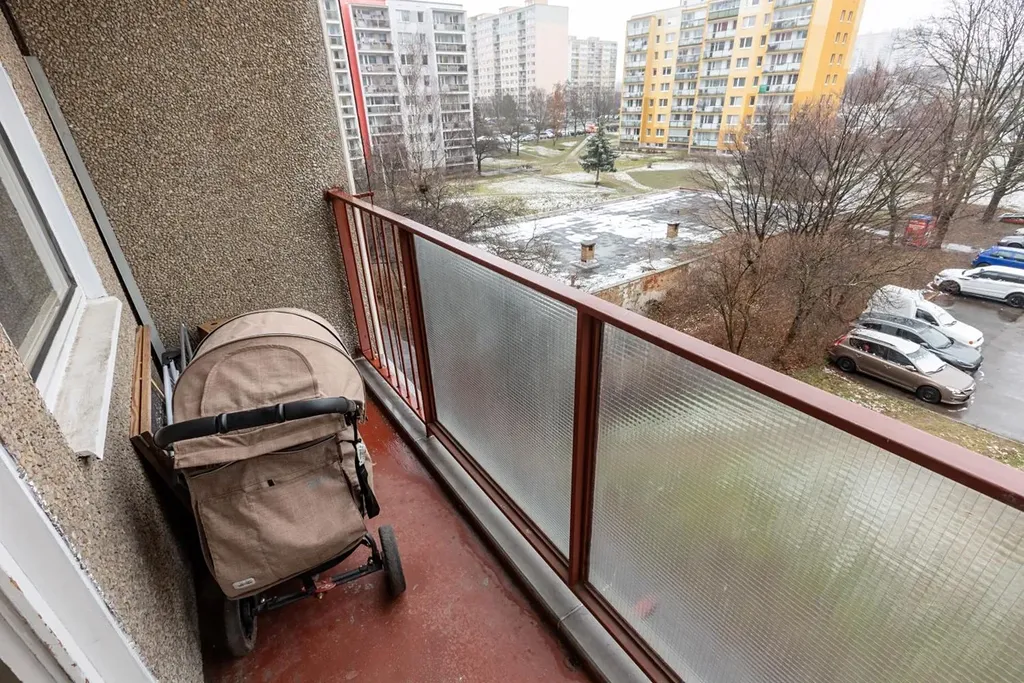 balkón, na který se vchází z obývacího pokoje.