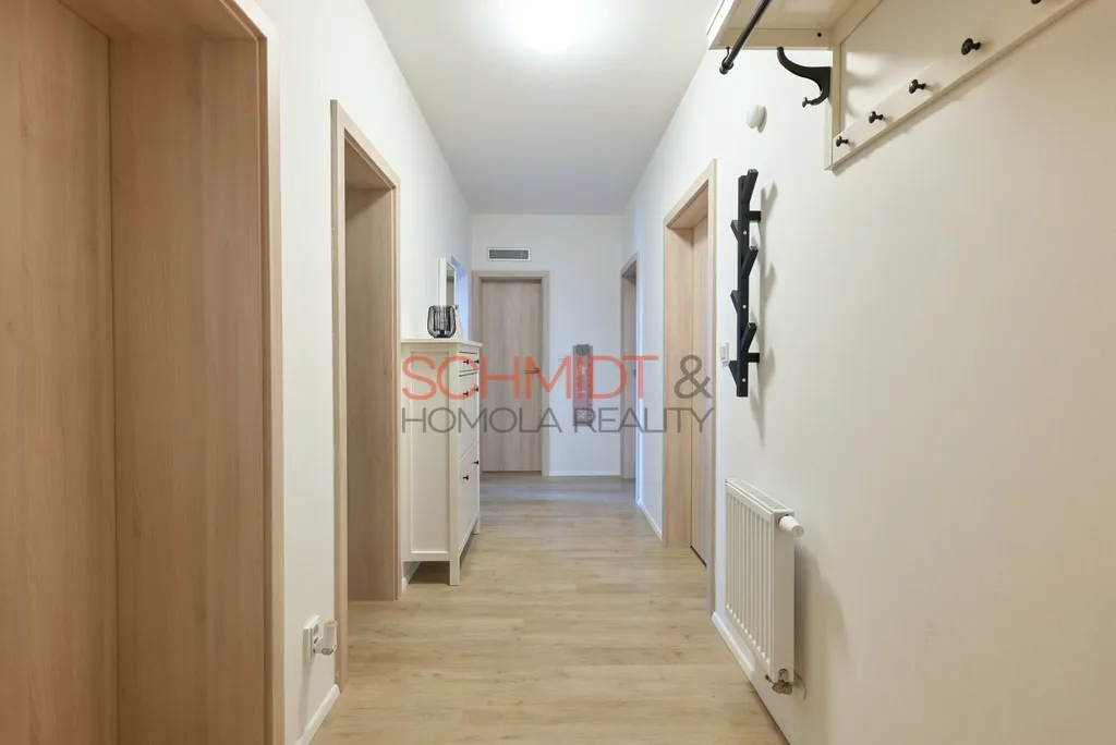 Užitná plocha bytu činí 64,21 m² + balkon 8,32 m² + sklep 2,86 m². Okna na západní stranu jsou osazeny předokenními žaluziemi, na severní a východní stranu jsou žaluzie vnitřní. V dětském pokoji a ložnice jsou na oknech také venkovní rolety. Kuchyně je vybavená vestavenými spotřebiči včetně myčky nádobí, v obývacím pokoji orientovaném na západ je klimatizace. Mezi další výhody bytu patří koupelna s vanou, oddělené wc, šatna a v neposlední řadě prostorný balkon s krásným výhledem. V ložnici i dětském pokoji je vestavená skříň. Přímo před domem se nachází zastávka školního autobusu, parkování na veřejných plochách je bezproblémové. Cena bytu je konečná, včetně provize realitní kanceláře.
