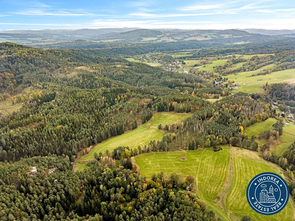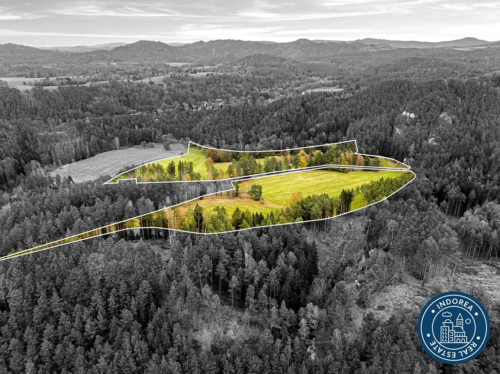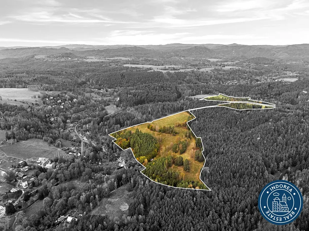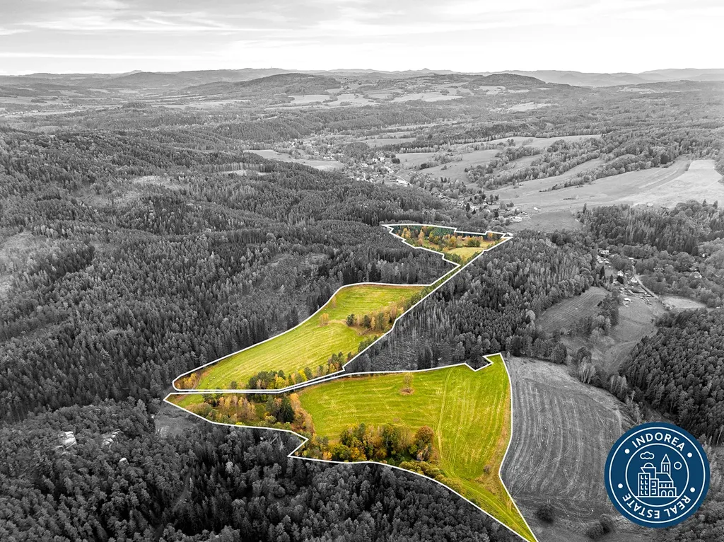 Celková výměra pozemků, které nabízíme činí 170 714 m2 a skládá se z trvalých travních porostů, lesních pozemků a v neposlední řadě ze stavebního pozemku, který má plochu 1400 m2. Na tomto stavebním pozemku je povolena výstavba rodinného domu venkovského typu s jedním nadzemním podlažím a s obytným podkrovím. Je zde nově kopaná studna do hloubky 10 metrů s vodním sloupcem 2 metry, příprava na kořenovou čističku, a elektrická přípojka na hranici pozemku.