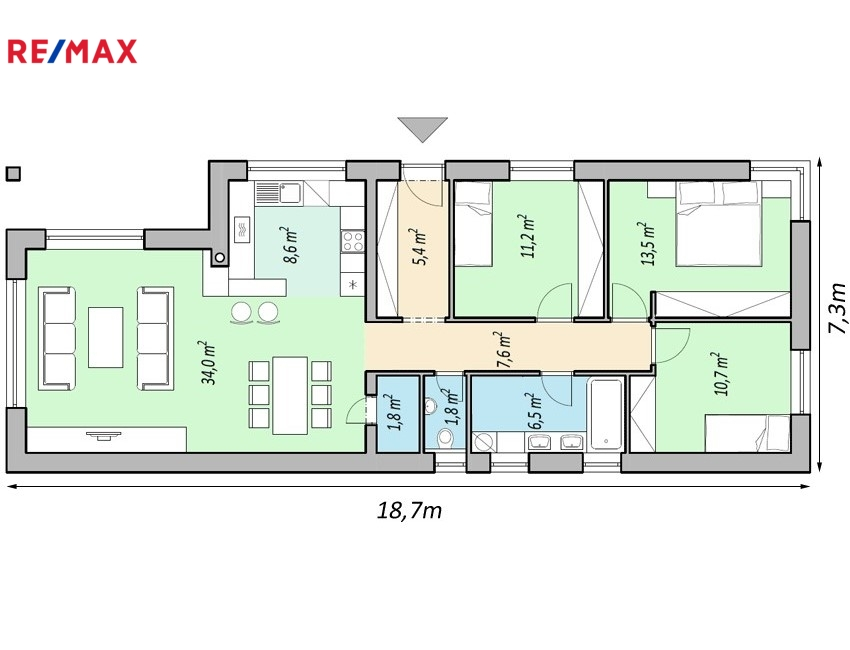 Dispozice 4+kk s užitnou plochou 102 m2 je ideální pro 4člennou rodinu. Propracovaná studie rodinného domu zaručuje vysokou kvalitu provedení spolu s ekonomicky přijatelným řešením. Dům nabízí prostorný obývací pokoj s kuchyňským koutem a spíží; ložnici, 2 dětské pokoje, prostornou koupelnu s vanou a sprchovým koutem, komfortní zádveří a technickou místnost se samostatným WC. Velké francouzské okno v obývacím pokoji zajistí dostatečné množství světla a pohodlný vstup na zahradu.