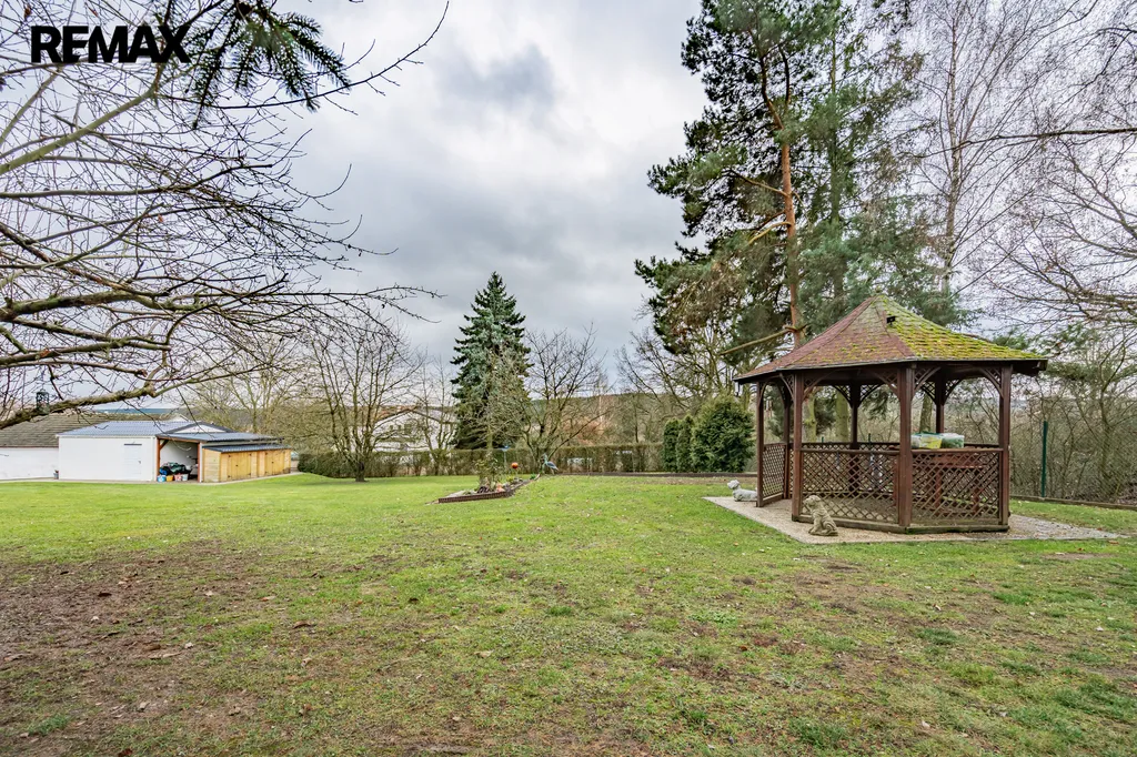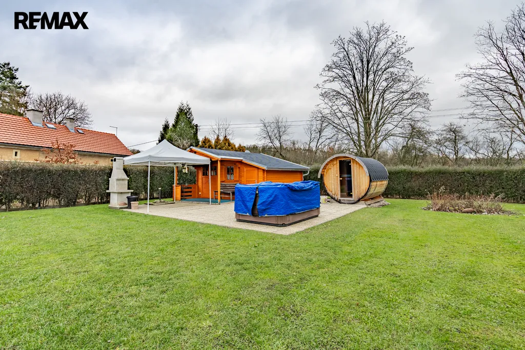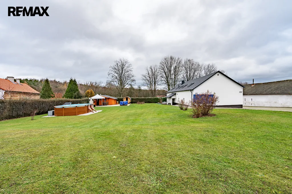 Součástí nemovitosti je velká zahrada poskytující dostatek soukromí, prostor pro relaxaci, zahradničení nebo rodinné aktivity. Pozemek umožňuje také další využití – například bazén, pergolu nebo menší hospodářské zázemí.