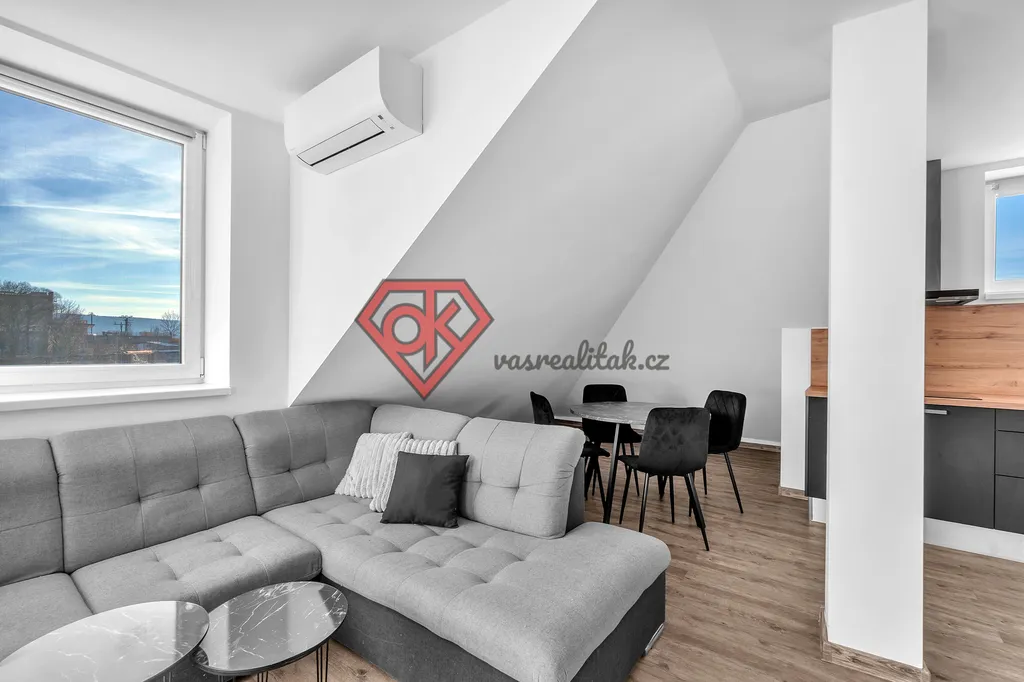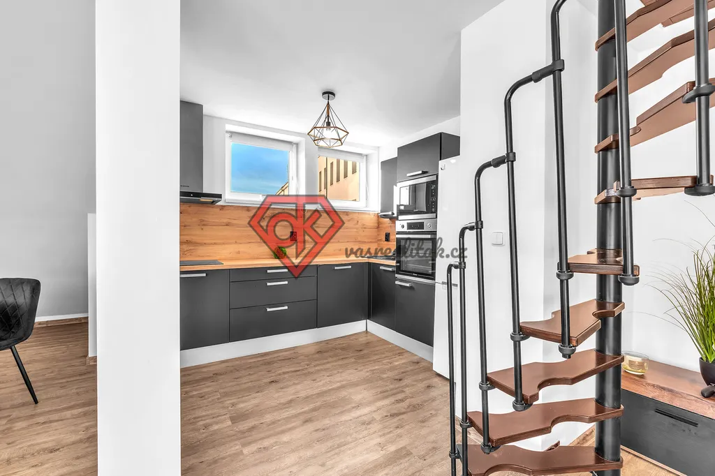 Byt o dispozici 2+kk s galerií nabízí otevřené spaní v patře, kam vás zavede elegantní schodiště přímo z obytné části. Celek působí vzdušně, moderně a přitom útulně. Jedná se o novostavbu cihlového domu a byt je ve skvělém stavu přímo k nastěhování. Nachází se ve 4. nadzemním podlaží domu s výtahem a jeho celková plocha činí 70 m².