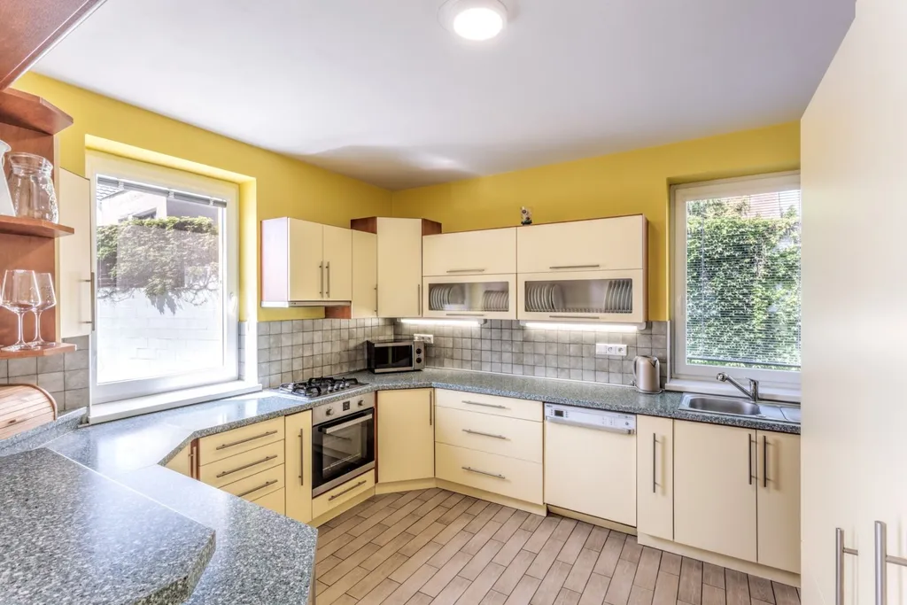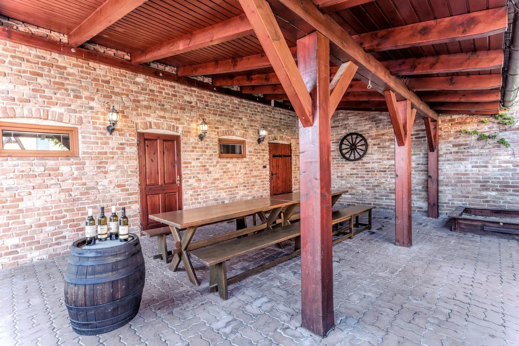 Dvou garáž je částečně podsklepena a je zde vinný sklípek s posezením. Půdorysy domu naleznete ve fotogalerii.