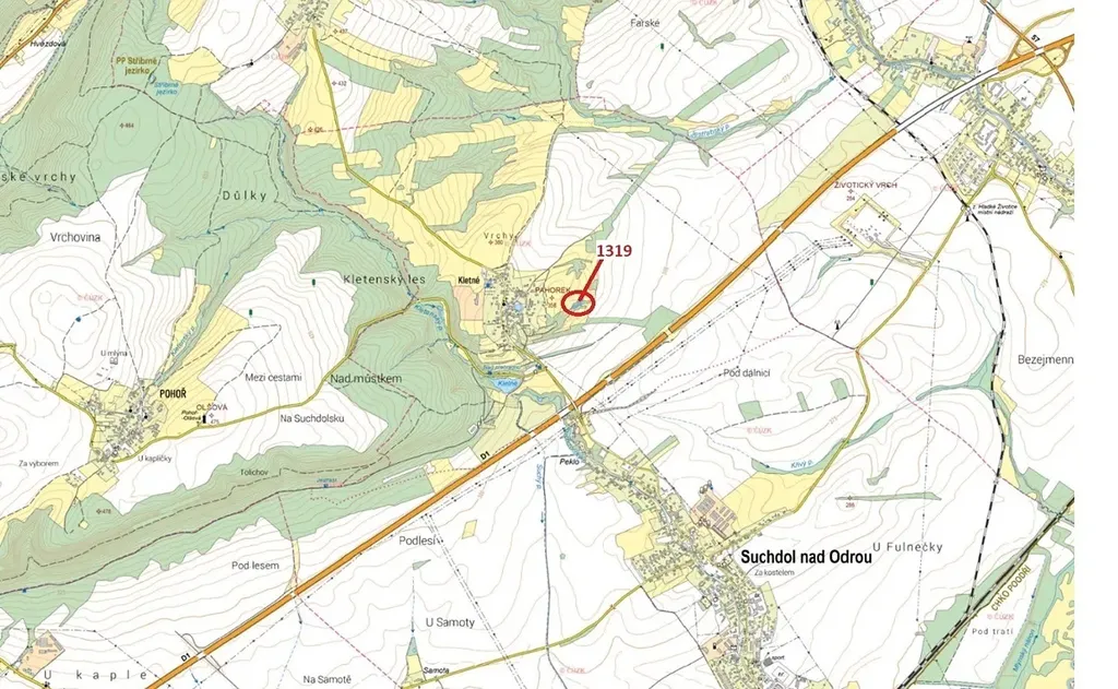 Lesní pozemek o výměře 2439 m2, parcelní číslo 1319, podíl 1/1, katastrální území Kletné, obec Suchdol nad Odrou, obec s rozšířenou působností Nový Jičín, okres Nový Jičín, Moravskoslezský kraj.