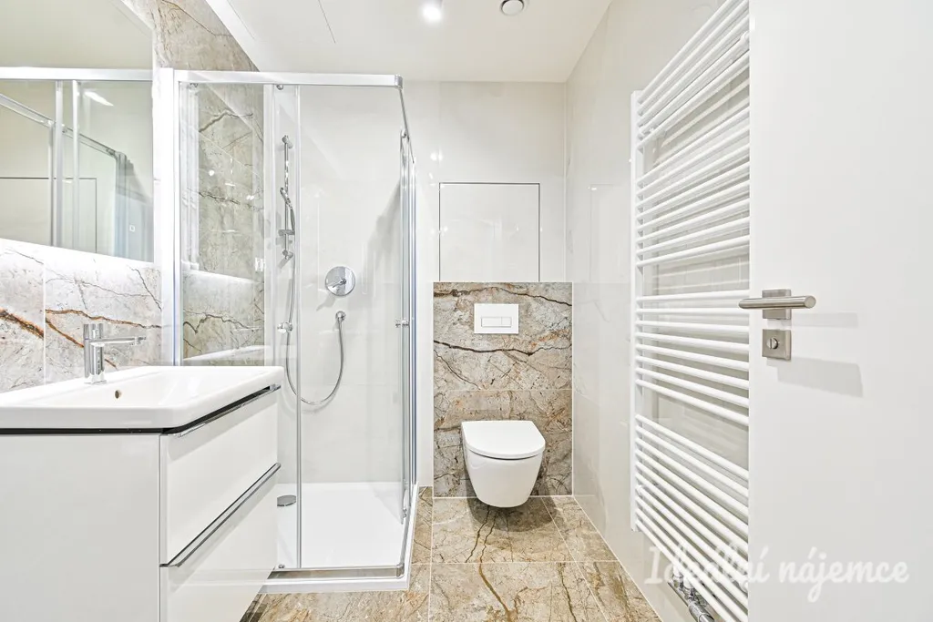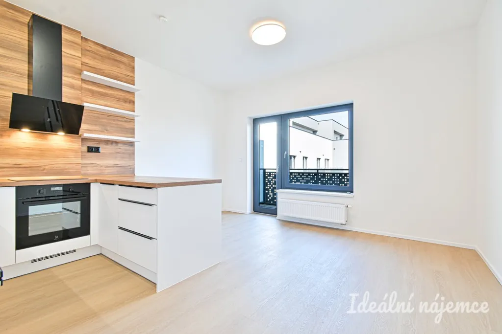 Dispozice je ideální pro jednotlivce nebo pár: obývací pokoj s kuchyňským koutem nabízí dost místa pro jídelní stůl i relaxační zónu, samostatná ložnice poskytne klid a soukromí. Byt je nevybavený, takže si ho můžete zařídit přesně podle svého stylu – od minimalistického po útulný „home office“ koncept. Moderní kuchyňská linka je zařízena veškerými spotřebiči jako lednice s mrazákem, mikrovlnná trouba, trouba, varná deska, digestoř a myčka. Koupelna je zařízena sprchovým koutem, umyvadlem se skříňkou a toaletou. Velkou výhodou bytu je praktická komora vybavena policemi.