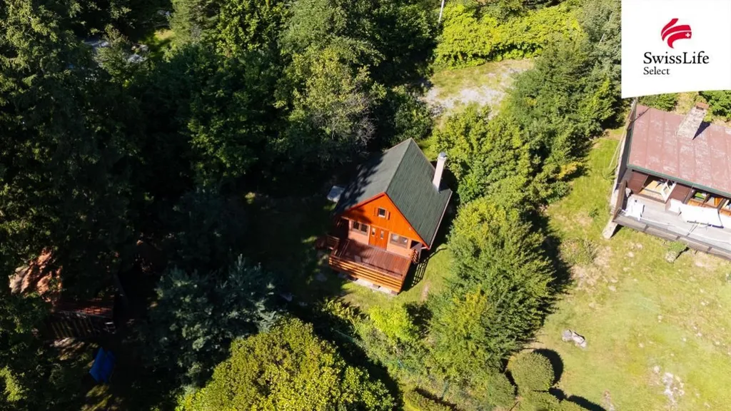 Chata má udržovaný dřevěný exteriér, prostornou terasu pro posezení a dostatek soukromí díky vzrostlé zeleni. Interiér po rekonstrukci působí útulně díky dřevěnému obložení a trámům.