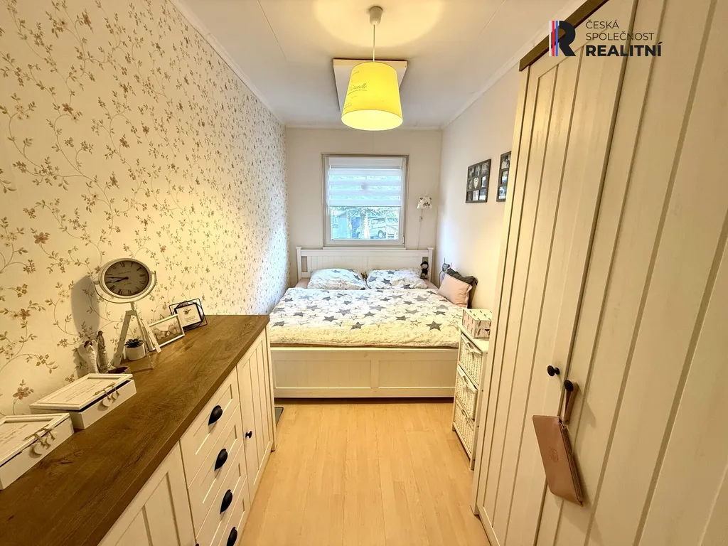 Dispozice domu zahrnuje kuchyni, jídelnu, prostorný obývací pokoj a tři samostatné ložnice, dále koupelnu a dvě samostatná WC. Dominantou domu je velkorysý obývací pokoj propojený s jídelnou, ze kterého je přímý vstup na prostornou terasu. Z terasy vedou schody přímo do udržované zahrady, která poskytuje příjemné soukromí a prostor pro odpočinek. V domu mohou parkovat 2 auta na zámkové dlažbě. Vjezd el. vraty.