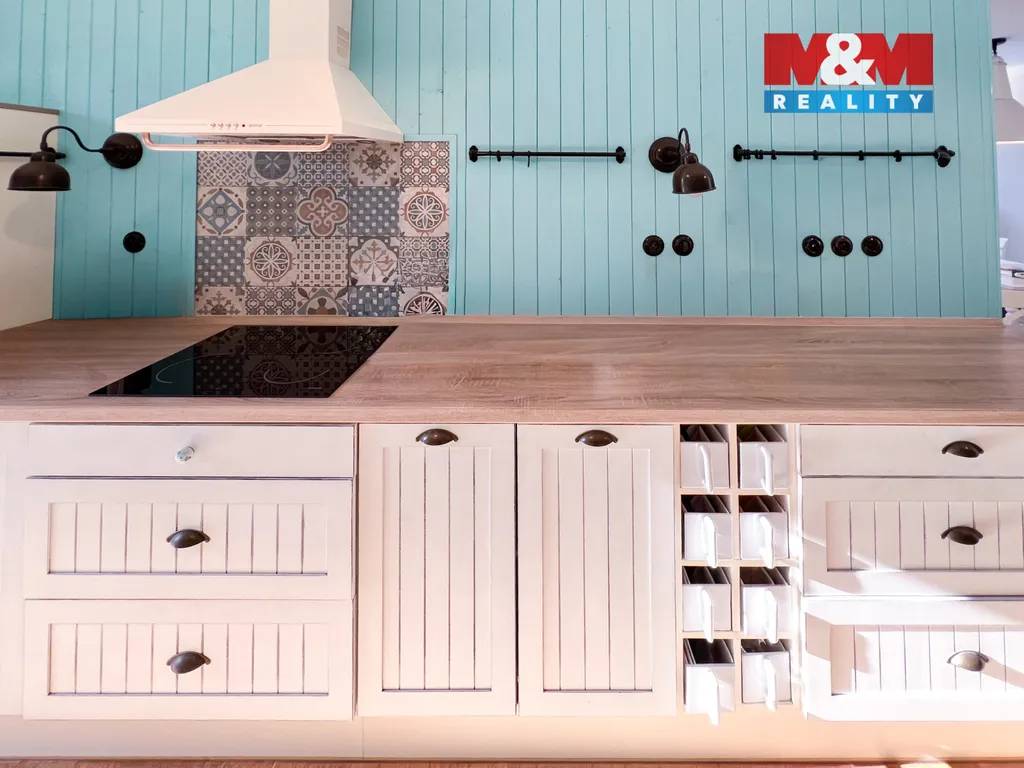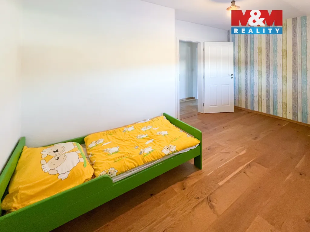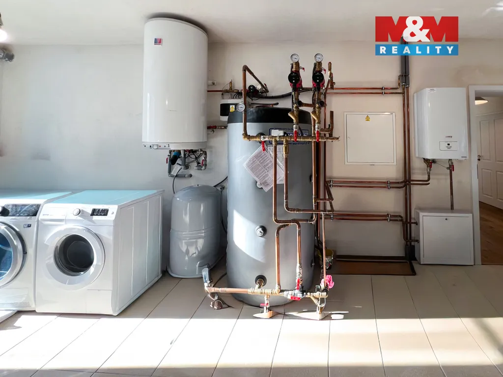 Interiér zaujme kvalitními dřevěnými podlahami, špičkovými spotřebiči a promyšleným vybavením. Dominantou obývací části je krb s výměníkem napojený na akumulační nádrže, který pohodlně vytopí celý dům a lze jej kombinovat s elektrokotlem. Voda je z vlastního vrtu. Krásná moderní kuchyně disponuje praktickou spíží. Ve 2. patře najdete 2 dětské pokoje a hlavní ložnici s vlastní prostornou šatnou.