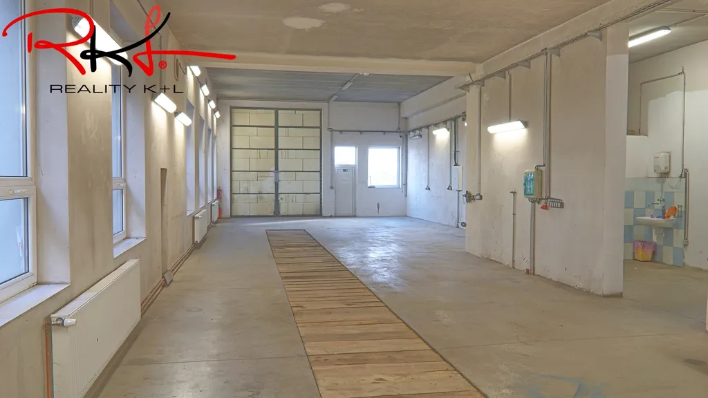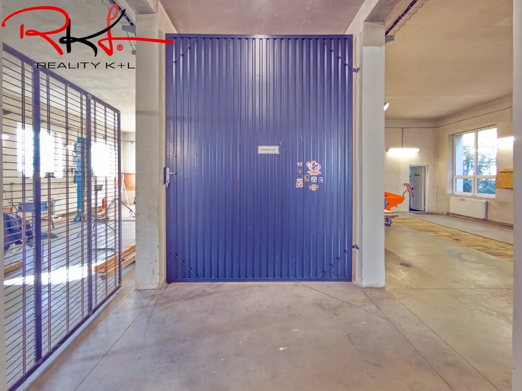 Dílna o celkové výměře 162 m², vybavená montážní jámou, se samostatným vstupem a vjezdovými plechovými vraty o výšce 4,5 m a samostatný zamykatelný sklad a sociální zařízení o výměře 36,34m2. Nájem – 43.800 Kč / měsíc, včetně tepla, vody a parkování.