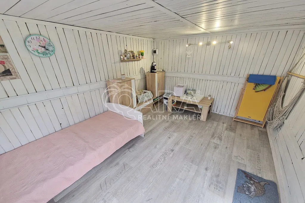 Nabízíme moc pěknou dřevěnou chatku (11 m2) v zahrádkářské kolonii Spořilov na Praze 4. Chatka má zavedenou elektřinu (jedna fáze) a letní vodovod (duben až říjen). Pozemek je 225 m2. Chatka má novou elektřinu, rozvod vody, plechovou střechu, podlahu, natřené palubky, bednu na nářadí. Pod chatkou je sklep cca 4 m2. Na pozemku jsou ovocné stromy, skalka, hnojiště, voda z okapu je svedená do barelu. Členové zahrádkářského svazu mají v kolonii k dispozici společnou klubovnu, moštárnu, WC a některá nářadí jako třeba kolečko, hrábě atd. Jedná se o převod členství. Pozemek je v nájmu. Roční náklady jsou cca 6.000,-Kč včetně nájmu za pozemek. Volejte a domluvte si prohlídku.
