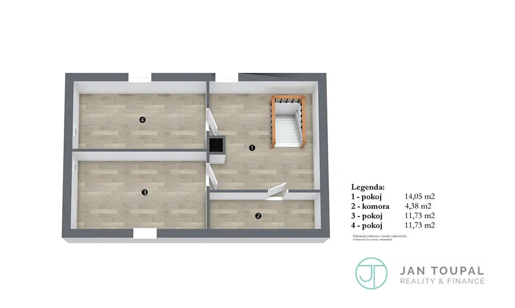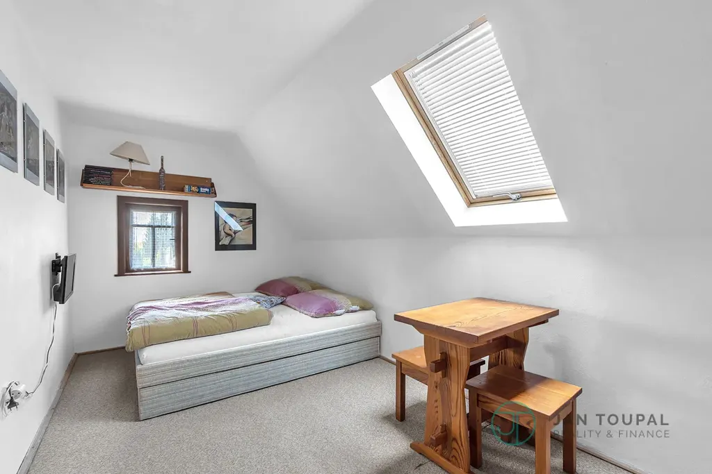 První patro: Zde se nacházejí dvě samostatné ložnice, které zajišťují dostatek soukromí, a prostorná komora pro ukládání věcí.