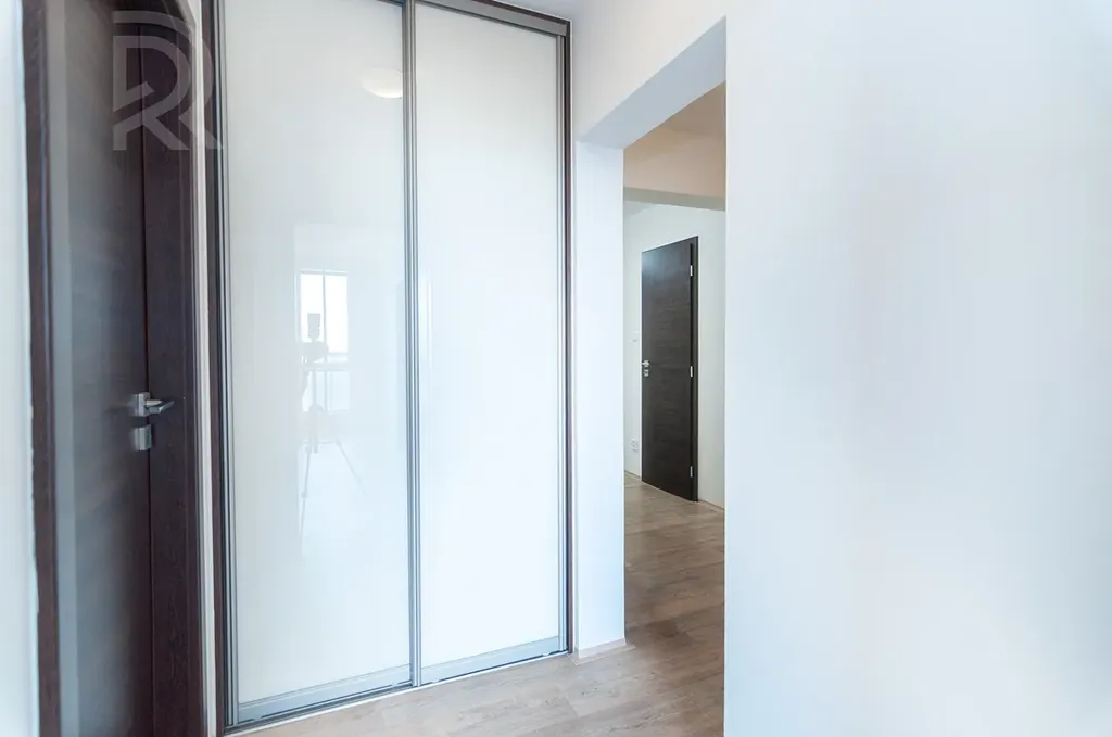 Kuchyň, ložnice a obývací pokoj s přístupem na balkon jsou orientovány na sever, menší pokoj je orientován na východ. Součástí bytu je také prostorná komora.