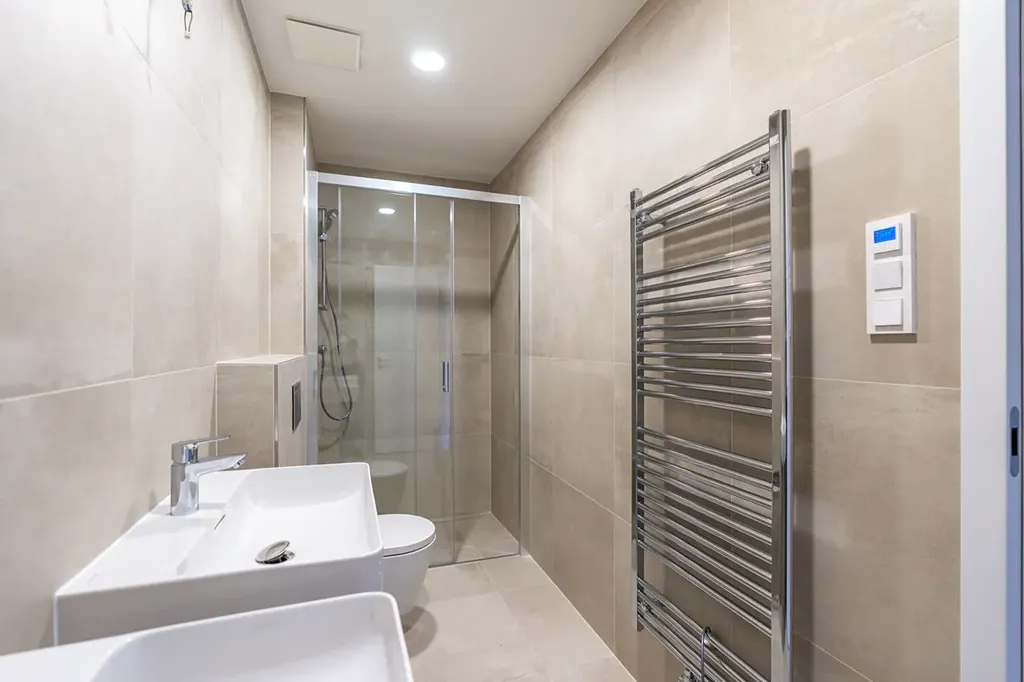 Provedení bytu ve vysokém standardu Premium nabízí např. celoplošně lepenou dřevěnou podlahu v obytných místnostech, lakované interiérové dveře, koupelnu s velkoformátovými keramickými obklady a prémiovými zařizovacími předměty. Součástí vybavení koupelny je také elektrické podlahové přitápění a žebříčkový radiátor. Byt je dále vybaven klimatizací ve všech obytných místnostech.