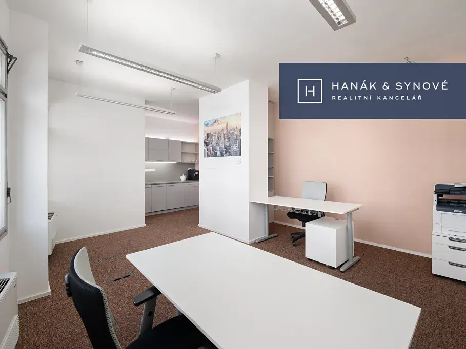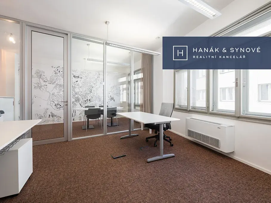 Nabízíme Vám podnájem nových, atraktivních, kompletně vybavených kancelářských prostor přímo v centru města Brna na ulici Česká. Jedná se o samostatnou kancelář o dispozici 2+kk s vlastním sociálním zázemím, umístěnou ve 4.NP budovy Convalaria. Výměra prostor je 52 m2, kanceláře jsou odděleny skleněnou příčkou, z menší kanceláře je vstup na malý balkon orientovaný do ulice Veselá.