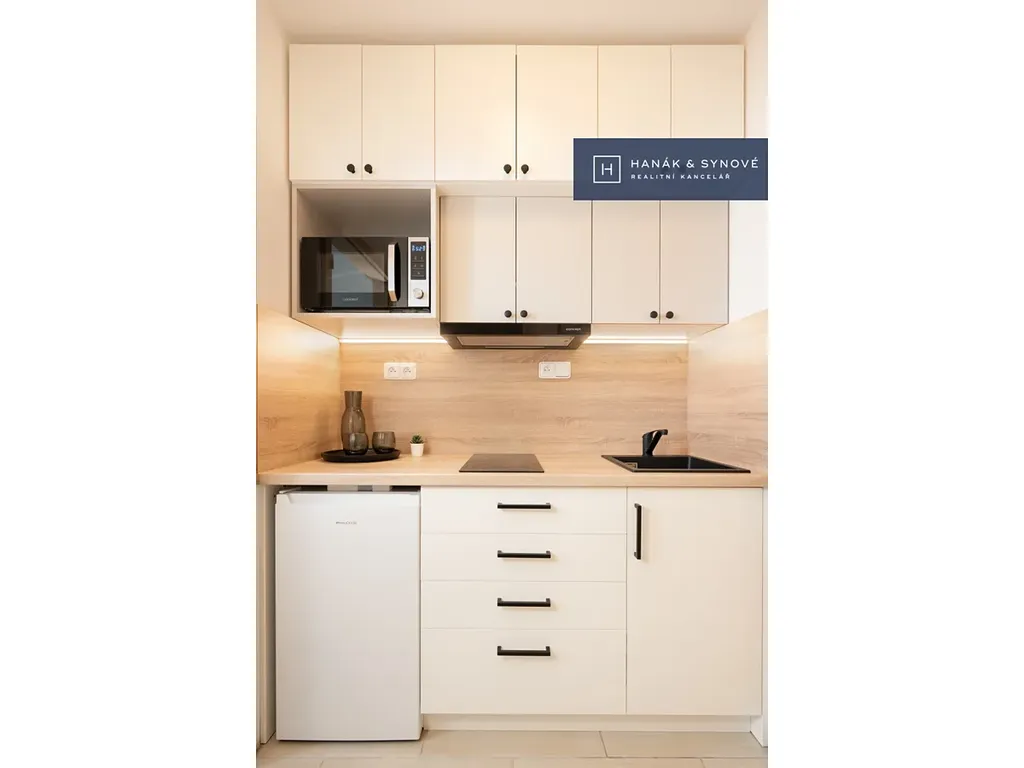 K dlouhodobému pronájmu Vám nabízíme nově zařízený byt 1+kk v OV v bytovém domě na ulici Anenská. Byt o ploše 16,1 m2 je umístěn v 6.NP je orientován na sever do ulice.