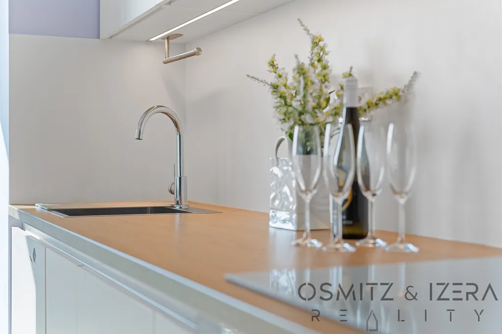 Kompletní vybavení: Byt je zařízen v moderním standardu a prodává se jako kompletně vybavený včetně pračky a sušičky. Kuchyňská linka je kompletně vybavena všemi Bosch spotřebiči a lednicí.