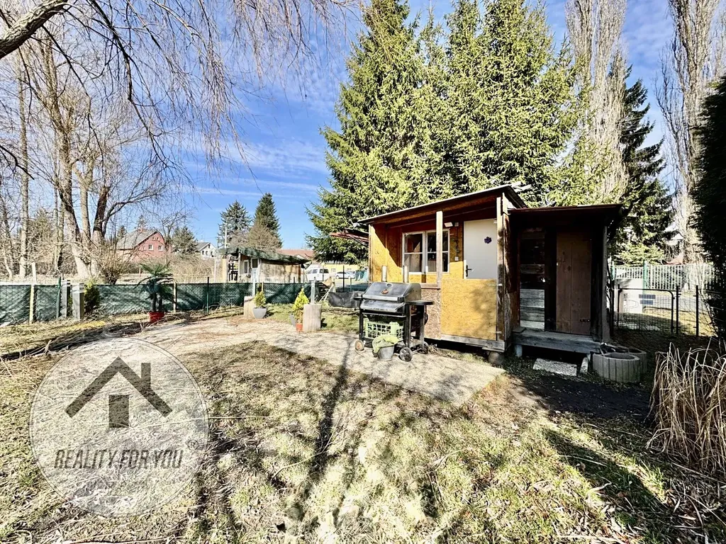Pozemek o výměře cca 400 m2 je rovinatý a kompletně oplocený. Na pozemku je stavba dřevěné chatky, která má menší obytnou místnost, skládek a chemické wc.