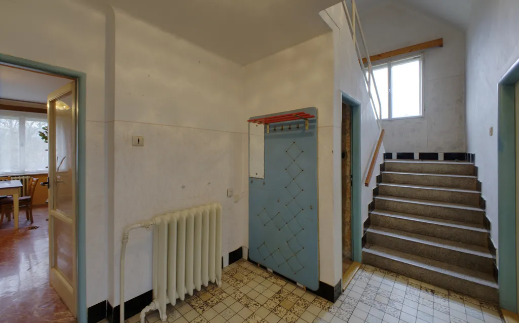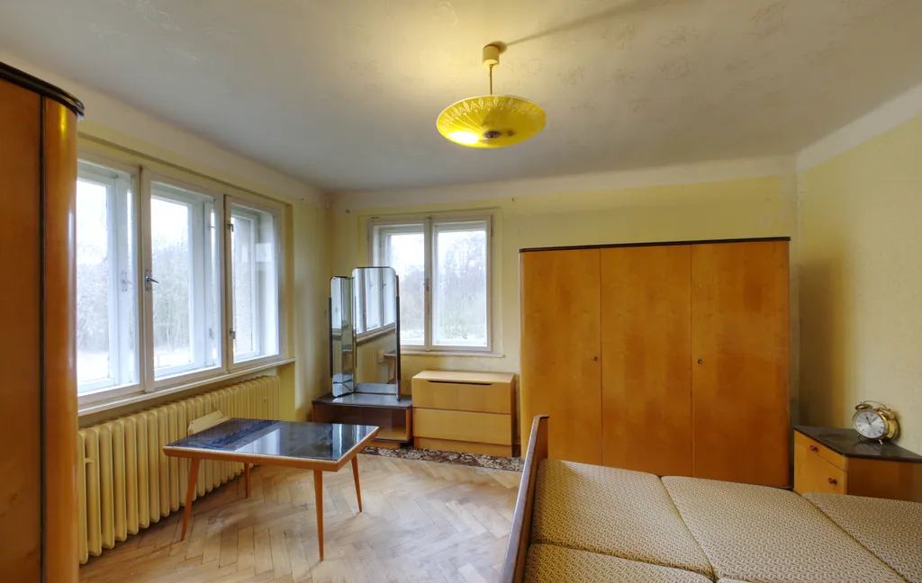 V přízemí se nachází byt o dispozici 4+kk – velký obytný prostor s kuchyňským koutem, tři další pokoje, koupelna, samostatné WC, spíž a zádveří.