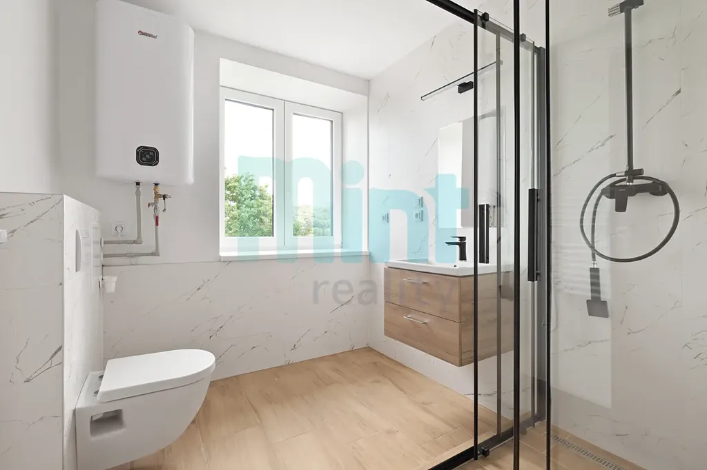 V přímém zastoupení majitele Vám nabízíme ke koupi jedinečný slunný byt, situovaný v novostavbě rodinného domu, který disponuje pouze čtyřmi bytovými jednotkami, a tak zaručuje maximální soukromí a exkluzivitu. Tento moderně navržený byt s dispozicí 2 + kk o užitné ploše 48 m² se nachází v 1. podlaží dvoupodlažního objektu. K bytu náleží také zahrada o velikosti 80 m².