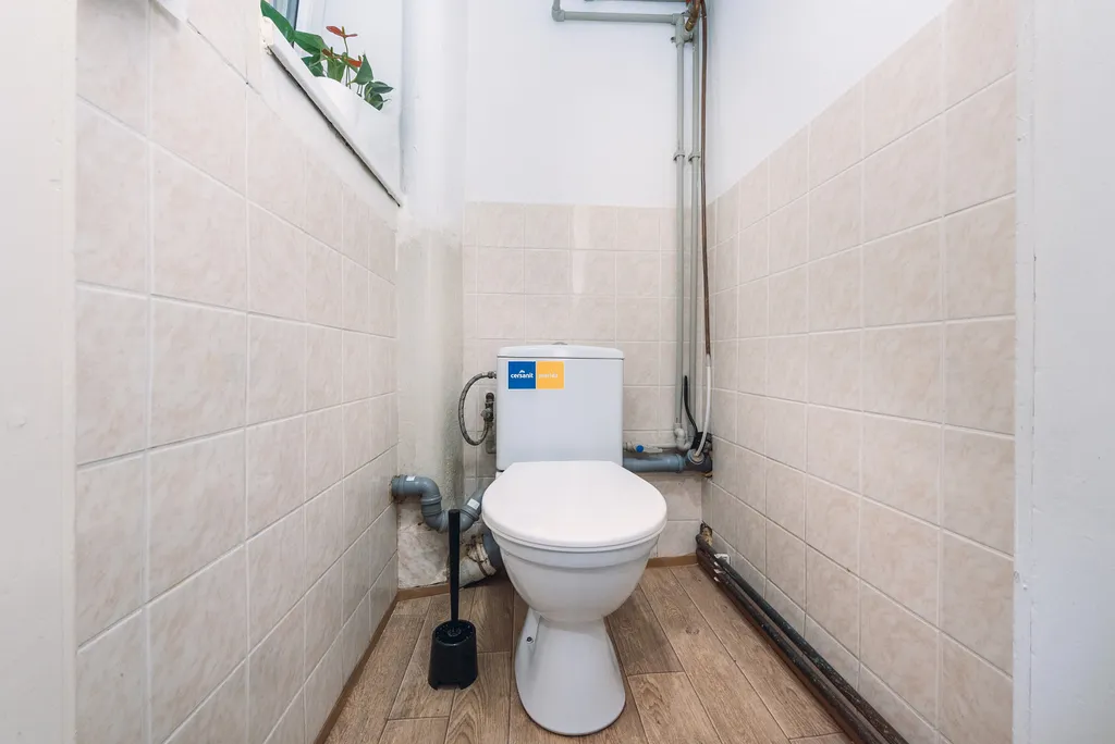 Stoupačky v plastu, vytápění bytu je vedeno tepelným čerpadlem, které je umístěno na balkoně. V obytných pokojích jsou položeny světlé koberce, v kuchyni a chodbě lino. Plastová okna s žaluziemi.