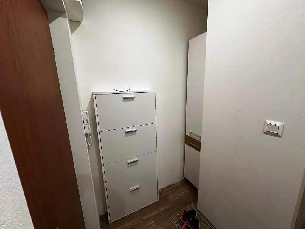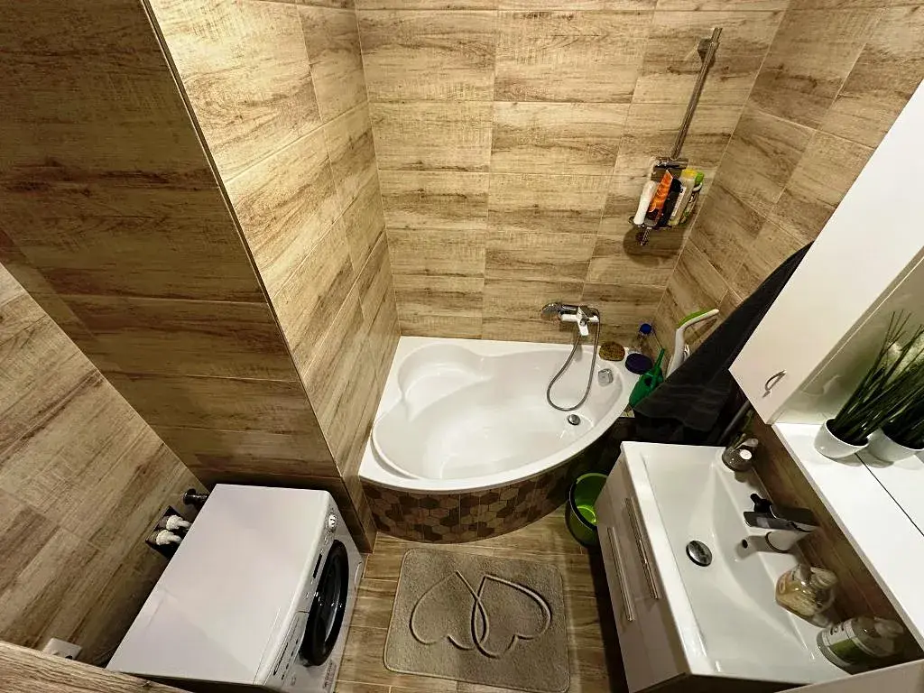 Dispoziční řešení bytu 2+kk o celkové výměře 45 m2. K bytu náleží vlastní balkon se vstupem ze společné chodby. Byt je po kompletní rekonstrukci. Zděné koupelnové jádro s rohovou vanou, skříňkou a pračkou, zůstává kuchyňská linka vč. spotřebičů, šatní skříň, nábytek v předsíni, jinak byt zůstává bez zařízení.