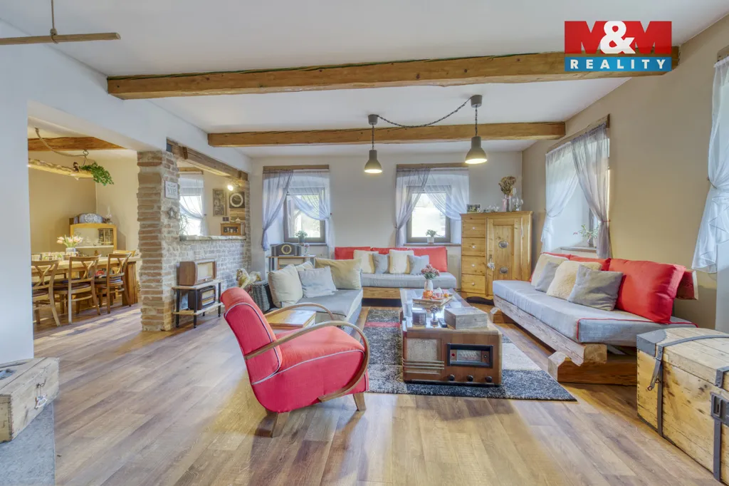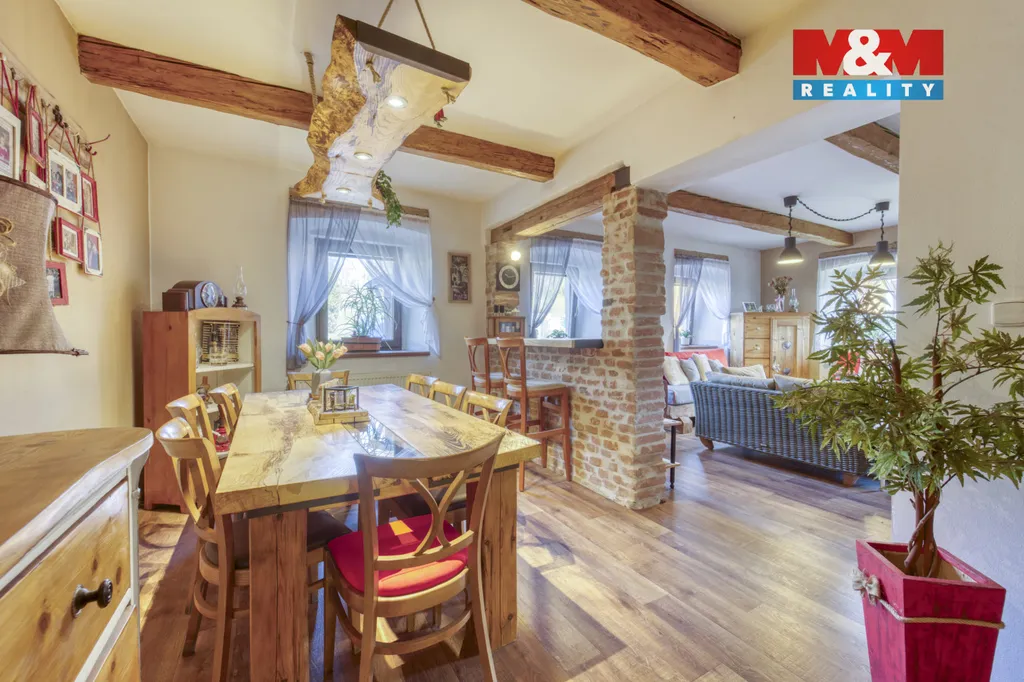 Nabízíme k prodeji rodinný dům o dispozici 6+kk v obci Hodousice nedaleko Nýrska, který je ideální pro milovníky koní a života v přírodě. Dům s užitnou plochou 189 m² se nachází na pozemku o velikosti 2 378 m² a prošel kompletní rekonstrukcí v roce 2019. Nemovitost nabízí spojení bydlení a zázemí pro chov koní – jedna část budovy slouží jako rodinný dům a druhá navazující část je využívána jako stáj pro tři koně. Dům se prodává kompletně zařízený. V přízemí domu se nachází obývací pokoj propojený s jídelnou, kuchyň a koupelna s toaletou. V patře jsou tři ložnice a pracovna, přičemž jeden z pokojů má vlastní koupelnu s toaletou. Vytápění zajišťuje elektrokotel, kotel na tuhá paliva a krb v obývacím pokoji. Na pozemku se nachází altán s krbem, vířivka, vlastní studna a pozemkem protéká potůček. Součástí areálu je také jízdárna. Na pozemek přímo navazuje louka o výměře 8 843 m² s přístřeškem pro koně, kterou je možné pronajmout a využívat jako pastvinu.