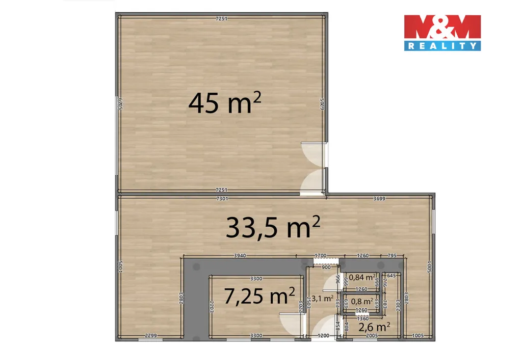 sklad: 33,5 m², hala: 45 m².
