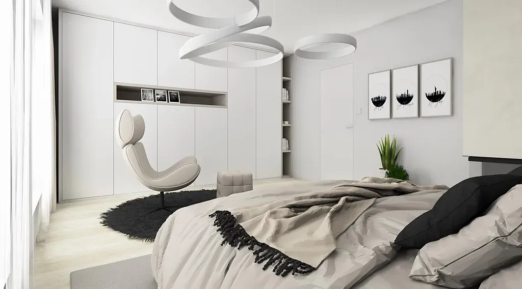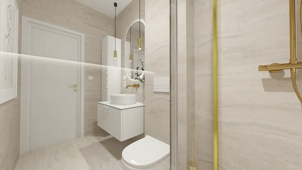 V přízemí se nachází obývací pokoj s kuchyní, jídelnou se vstupem na terasu a do zahrady. Dále dětský pokoj (popř. kancelář), koupelna a technická místnost. Přízemí je řešeno bezbariérově. V druhém podlaží se nachází manželská ložnice, dva dětské pokoje a druhá koupelna.